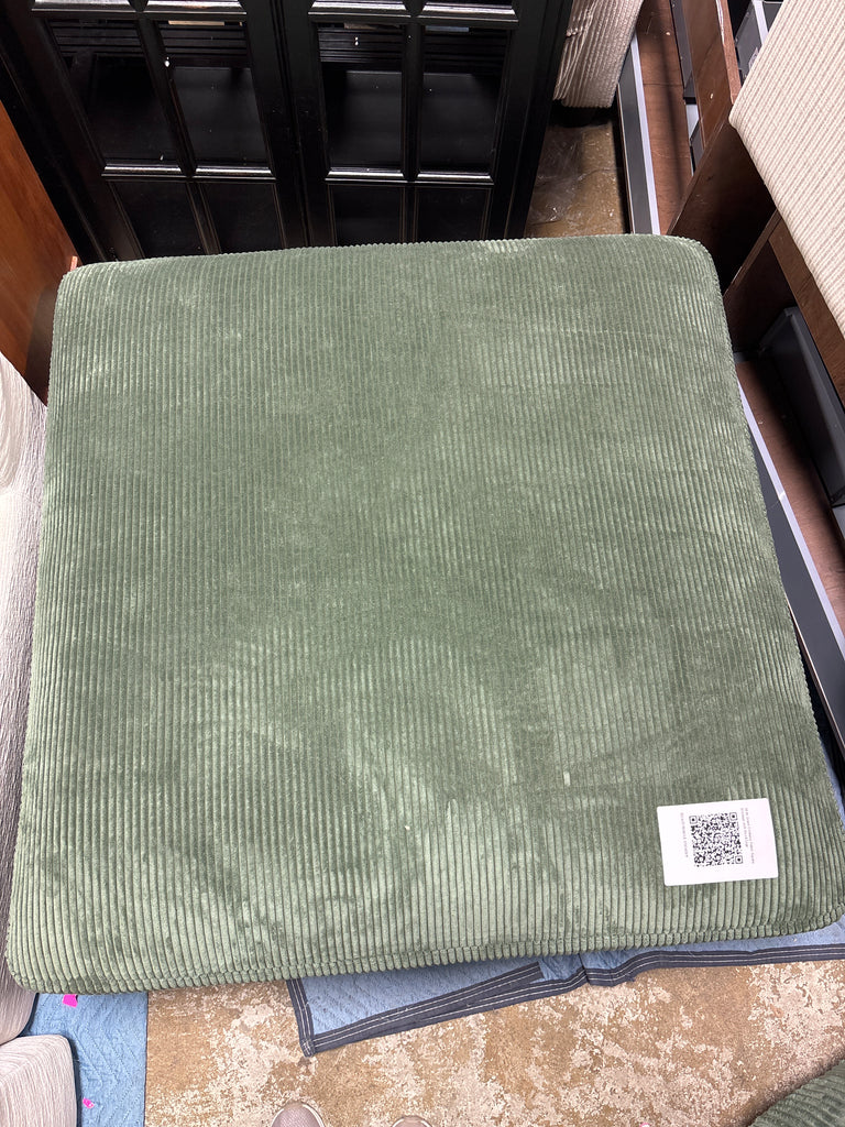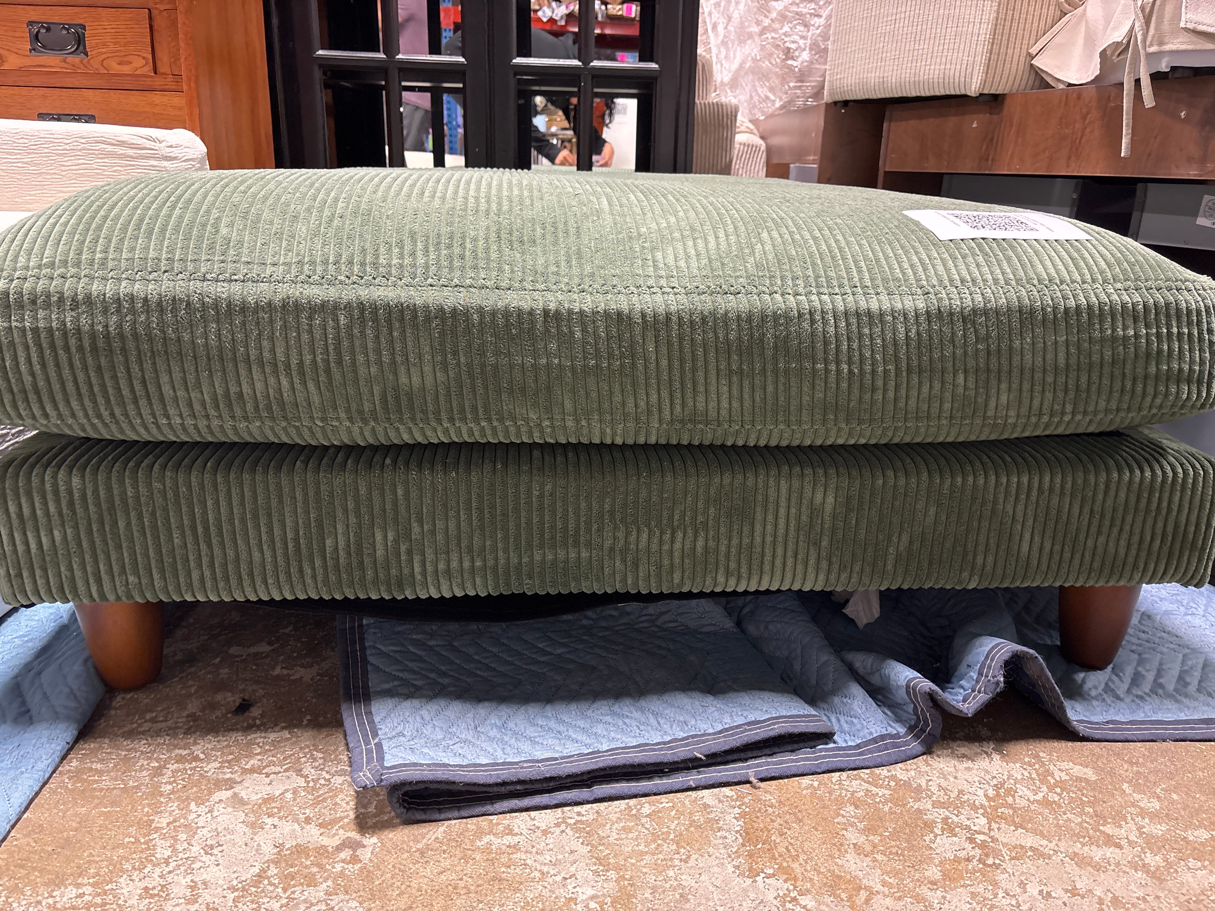 38 in. Green Corduroy Fabric Square Ottoman with Wood Legs SHOWROOM ITEM