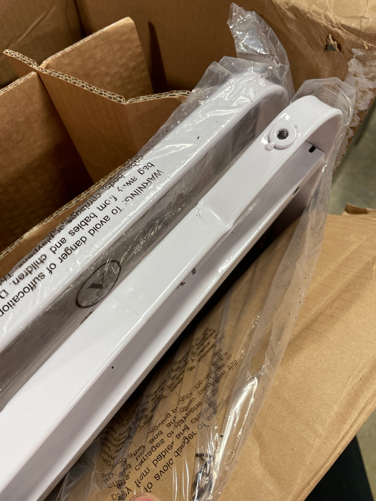 Note: There is a small dent in one of the side metal pieces, but everything else is in original packaging, including the hardware, see pic