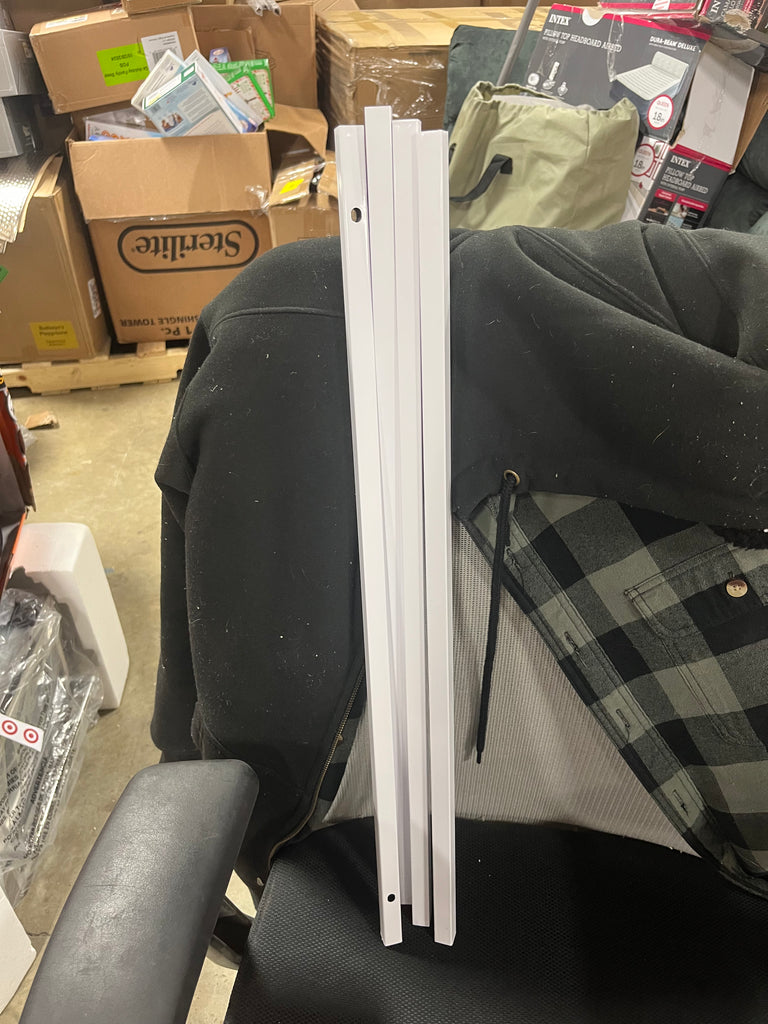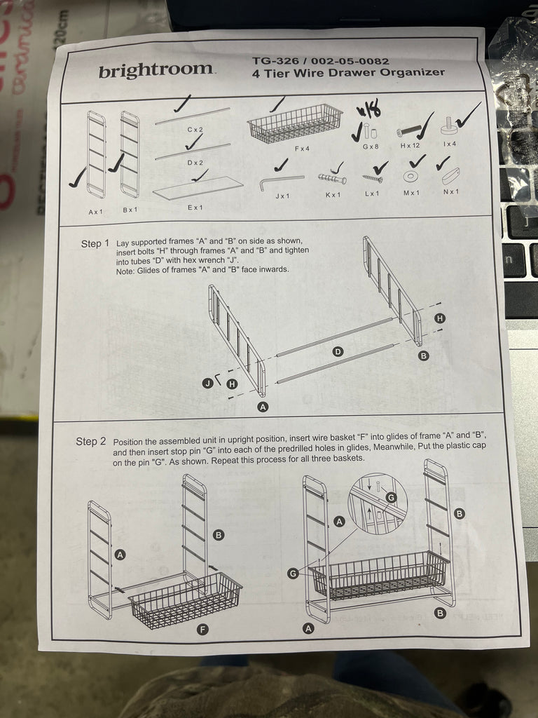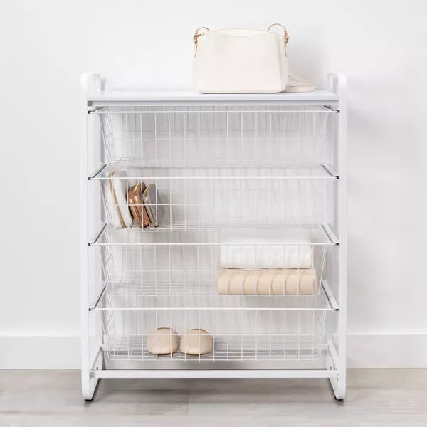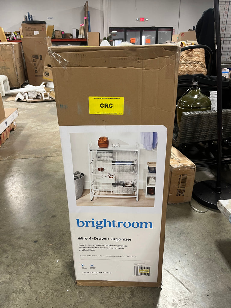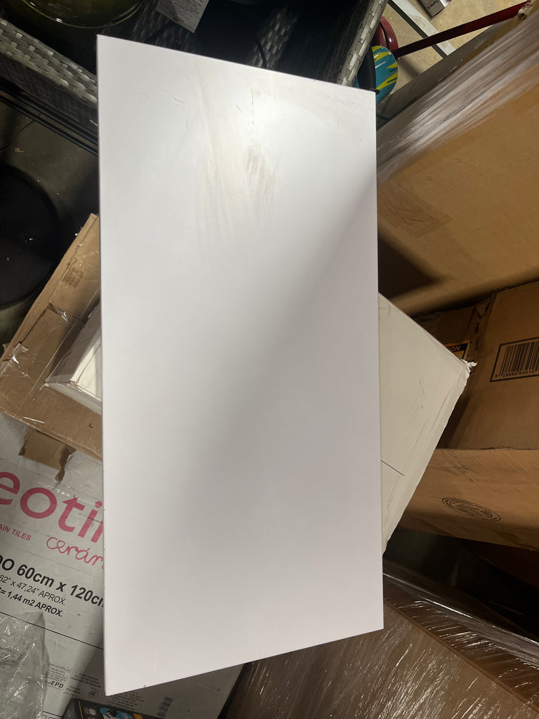 Note: Top board has some dark marks in the top left corner and some light scratching in the middle of the left side. Some of the baskets have some light scuffing on the metal. Missing 2 small nails. See pictures for more details.