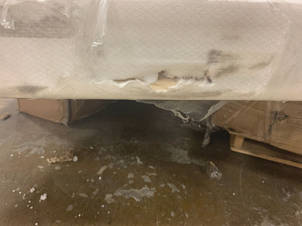 Out of the box, Size: queen 4", rip on side. please refer to in house photos