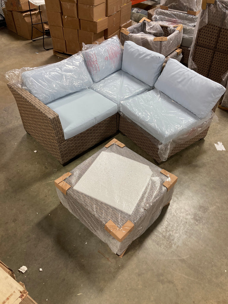 Some pieces and cushions are still in manufacturer's original packaging. See pictures for accurate colors on in stock set.
