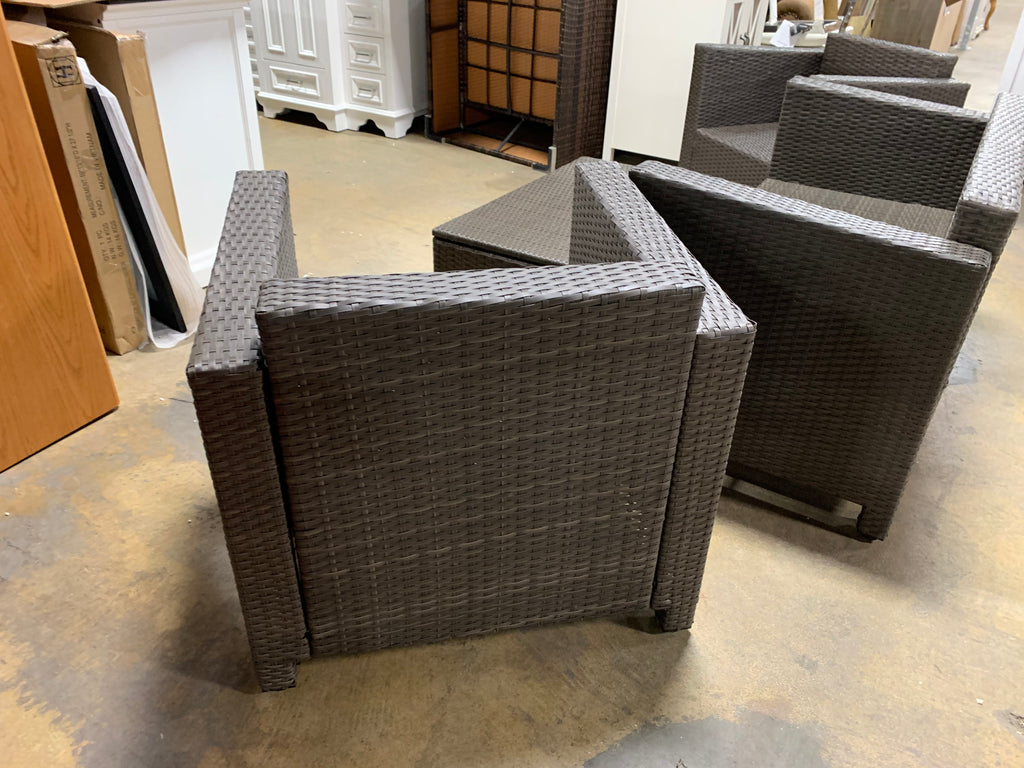 This seating group is in great condition. Includes loveseat, 2 club chairs and a table. No cushions included. Please see all photos for more details. Link below is to compare price only.