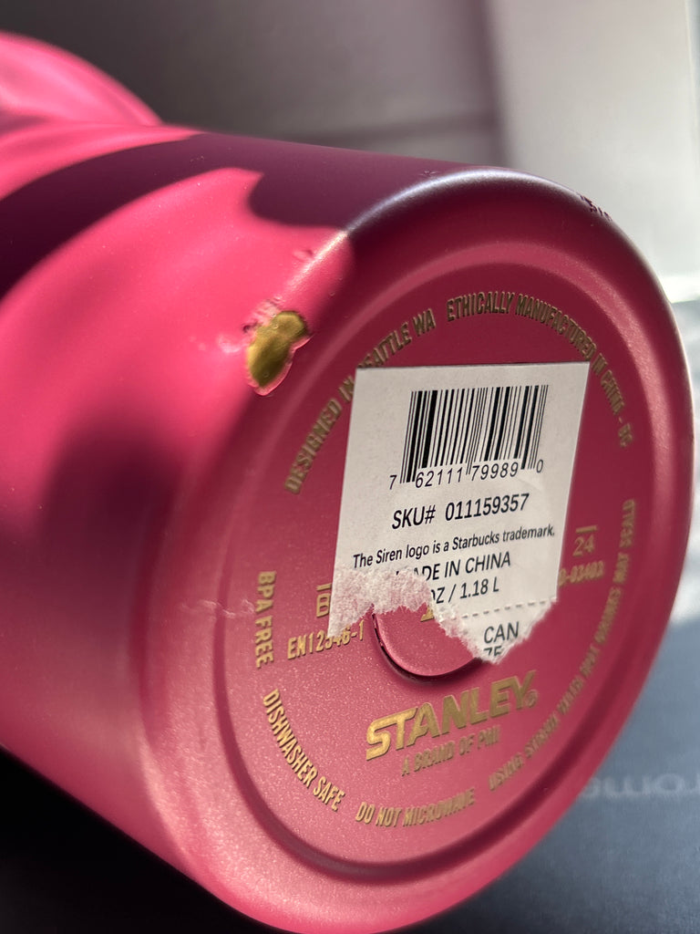 40oz Starbucks+Stanley Holiday Berry Pink Glitter with Gold Trimming Tumbler SHOWROOM ITEM