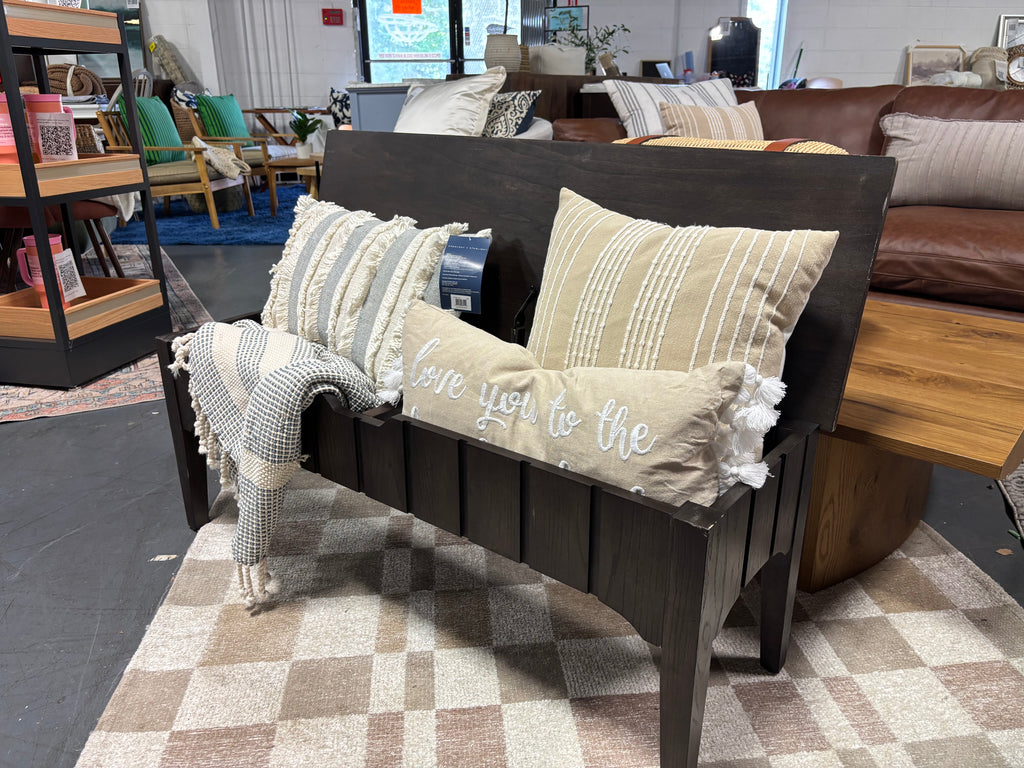 46" Palma Wood Base Storage Ottoman - Dark Brown SHOWROOM ITEM