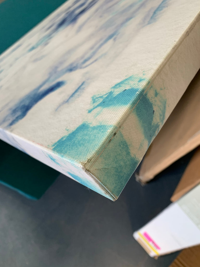 48" x 32" Blue Abstract Wrapped Canvas. EE982