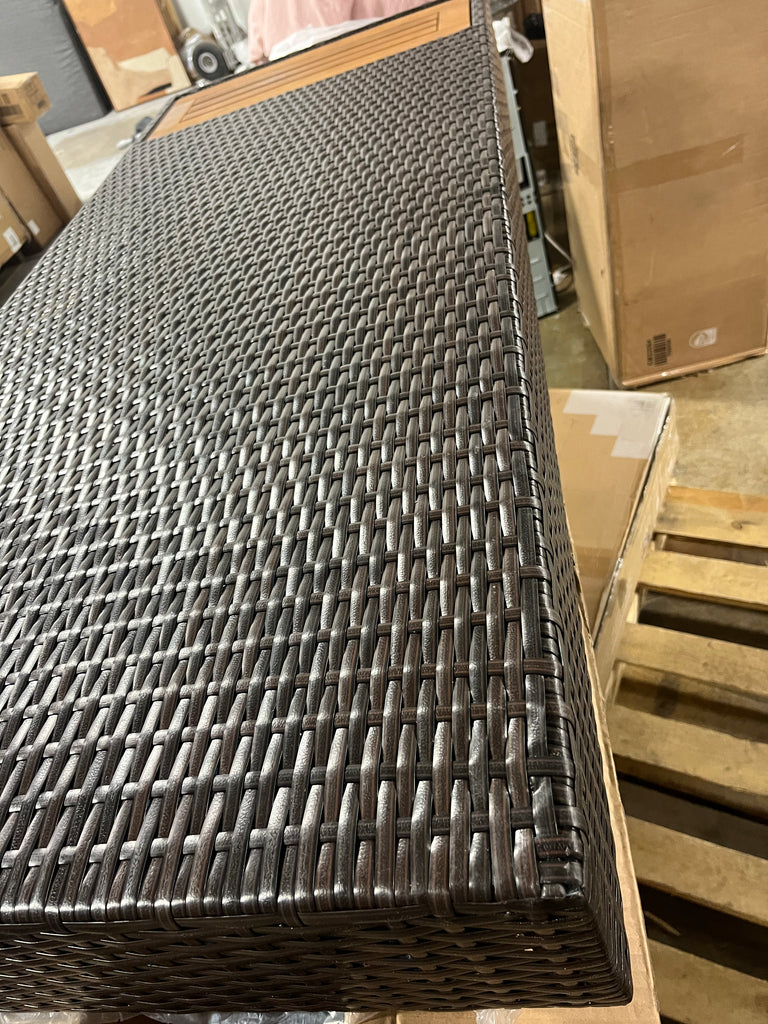 Note: This does not include ottoman. Missing 1 leg and there are some scratches on a few of the legs. Also has a slight ripple in the rattan on corner of piece. See in house photo for details.