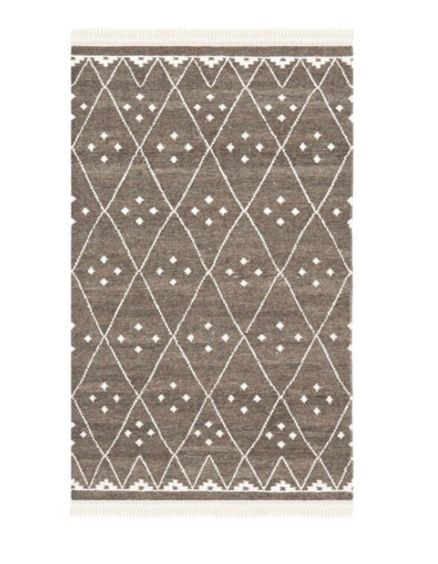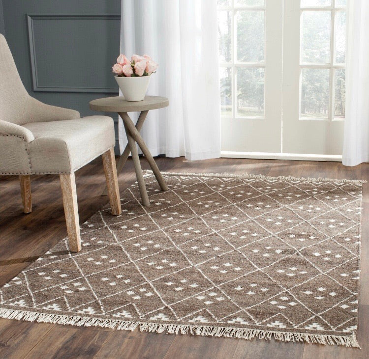 4'x6' Mill Geometric Flatweave Brown/Ivory Wool Rug CG324