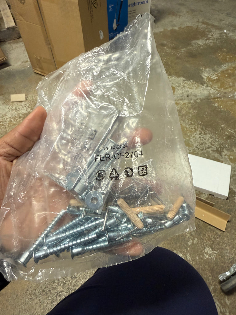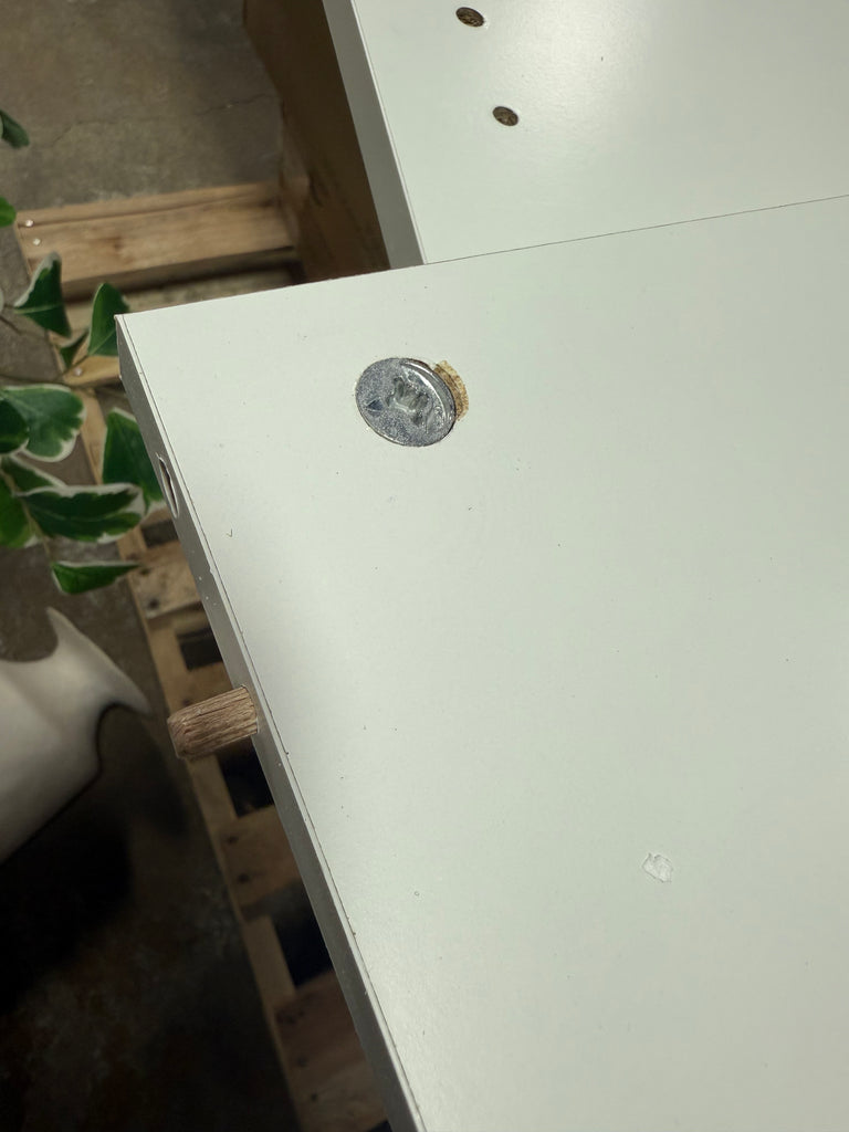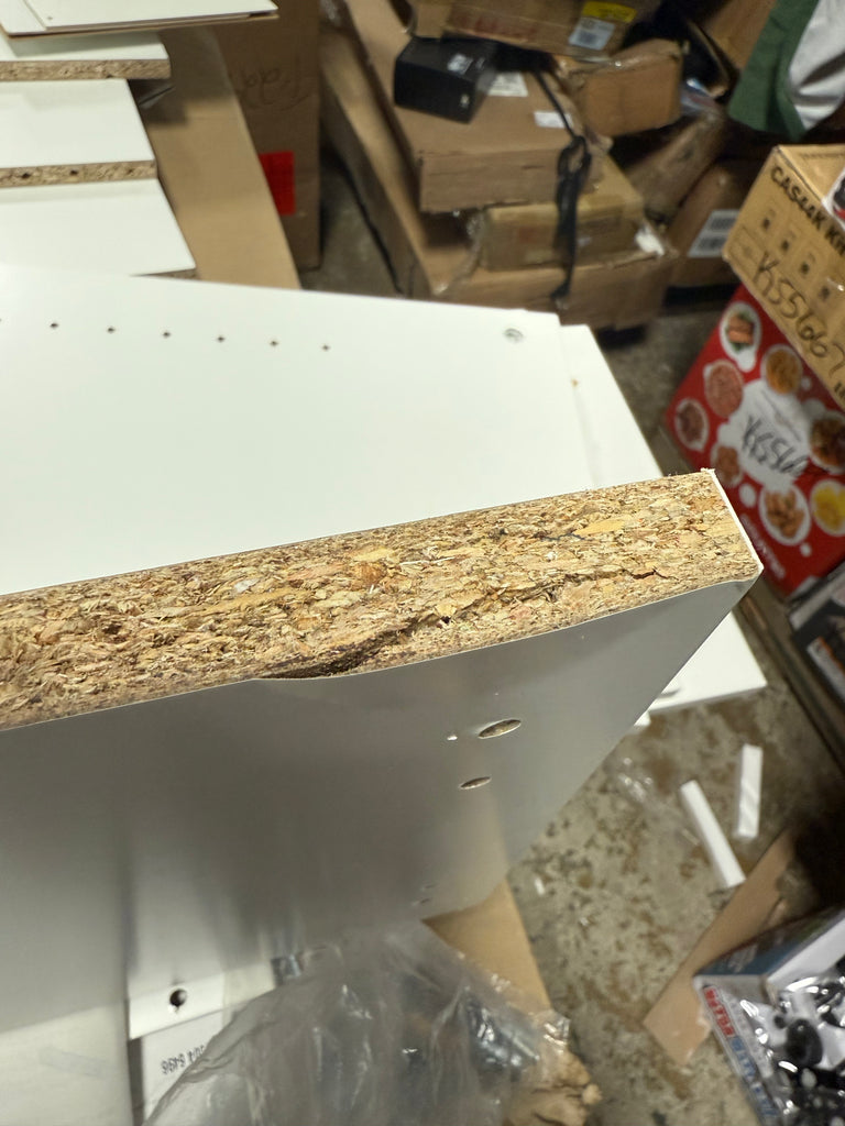 Note: Has some chips in wood, missing one shelf piece, hardware not in original packaging,customer will have to purchase extra,see pictures