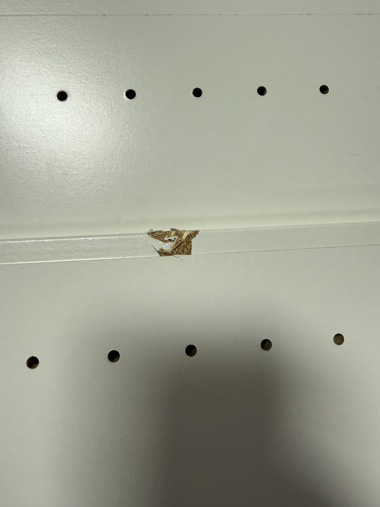 Note: Doesn't include hardware, has a chip in wood piece, also doesn't include instruction manual, see in house photo