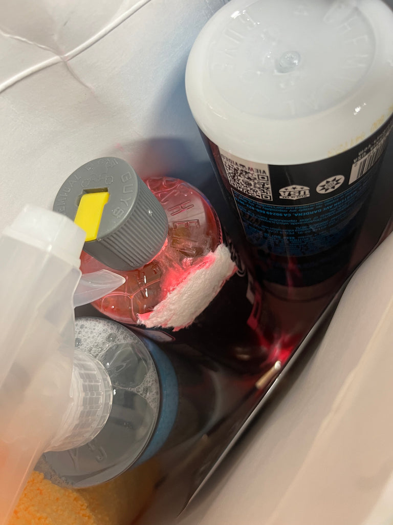Note: Pink cleaner had a leak but has since been sealed. All of the product is present.