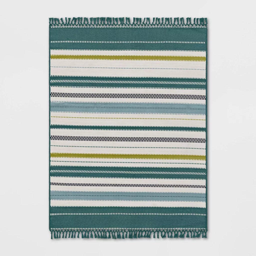 5'x7' Textural Stripe Rectangular Woven Outdoor Area Rug Light Green