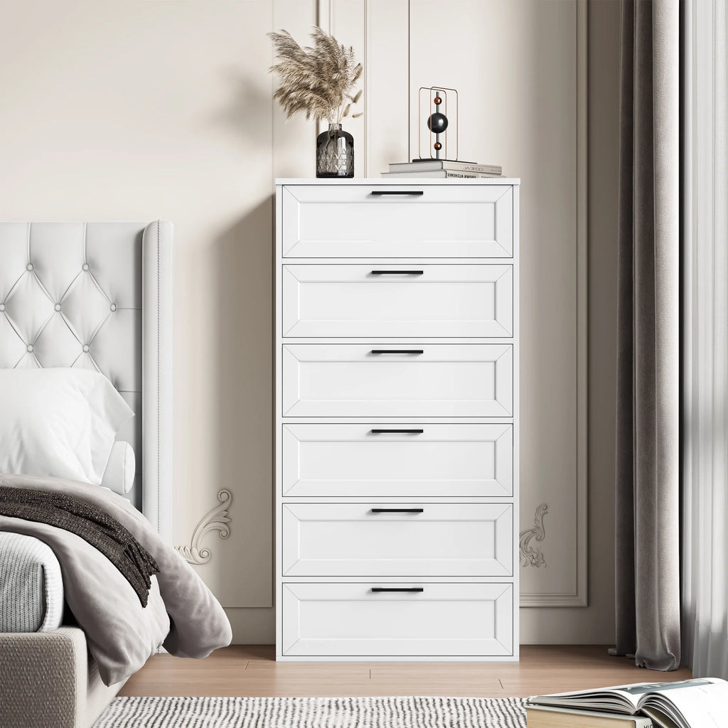 https://www.walmart.com/ip/Homfa-6-Drawer-Tall-Dresser-Chest-of-Drawer-Nightstand-with-Metal-Handles-for-Bedroom-White/3201444364