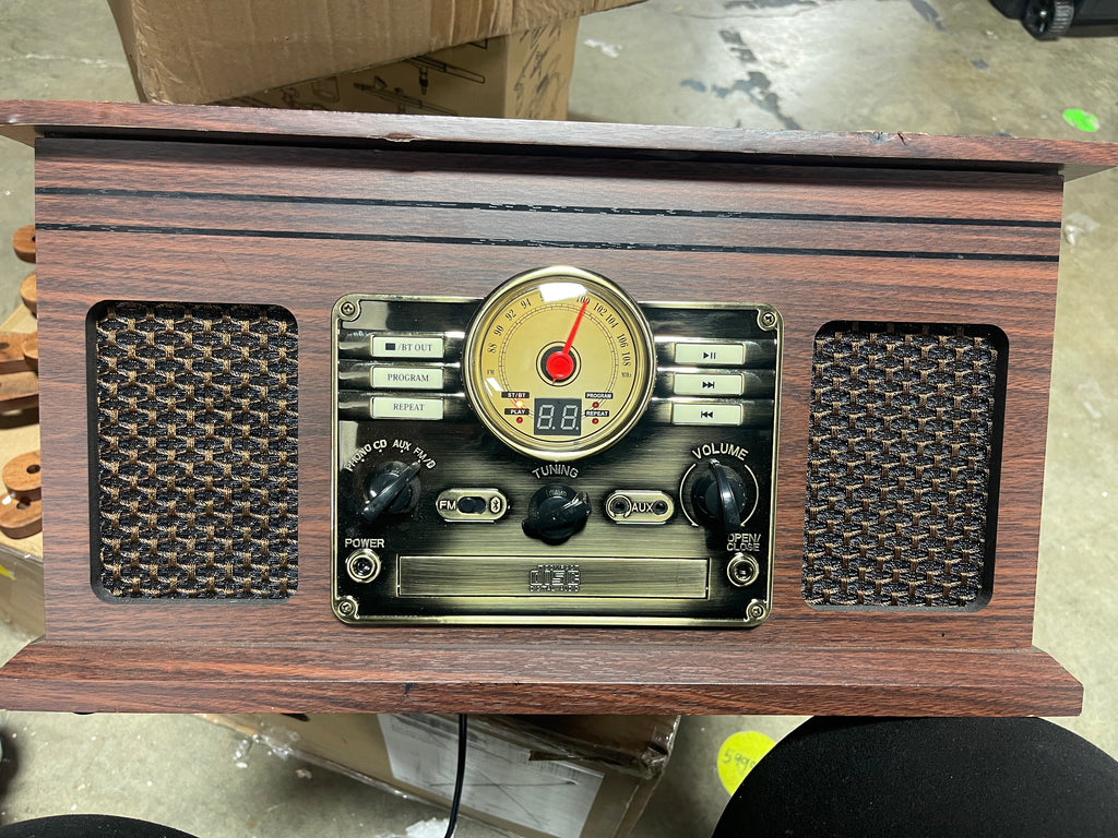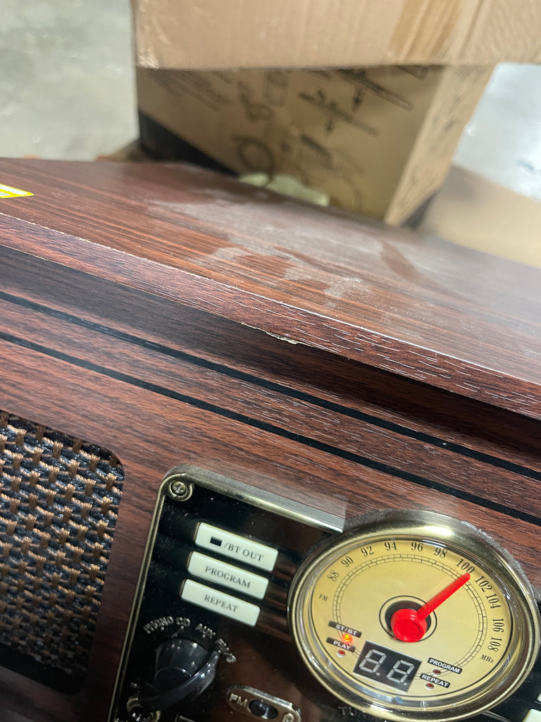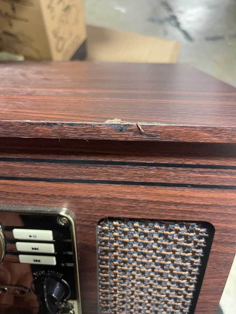 Note: Tested and turns on, has chips in wood to front,see pictures