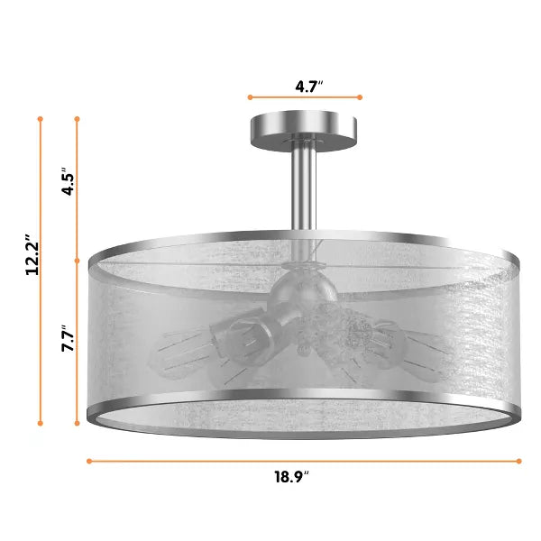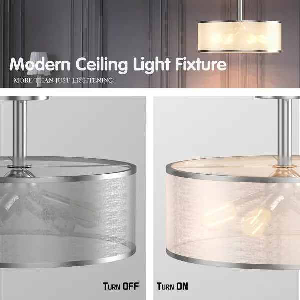 6-Light Semi Flush Mount Ceiling Light Pendant Lamp w/ Fabric Drum-shaped Shade