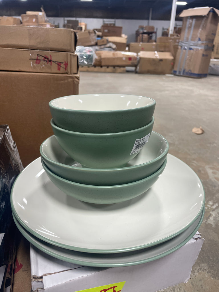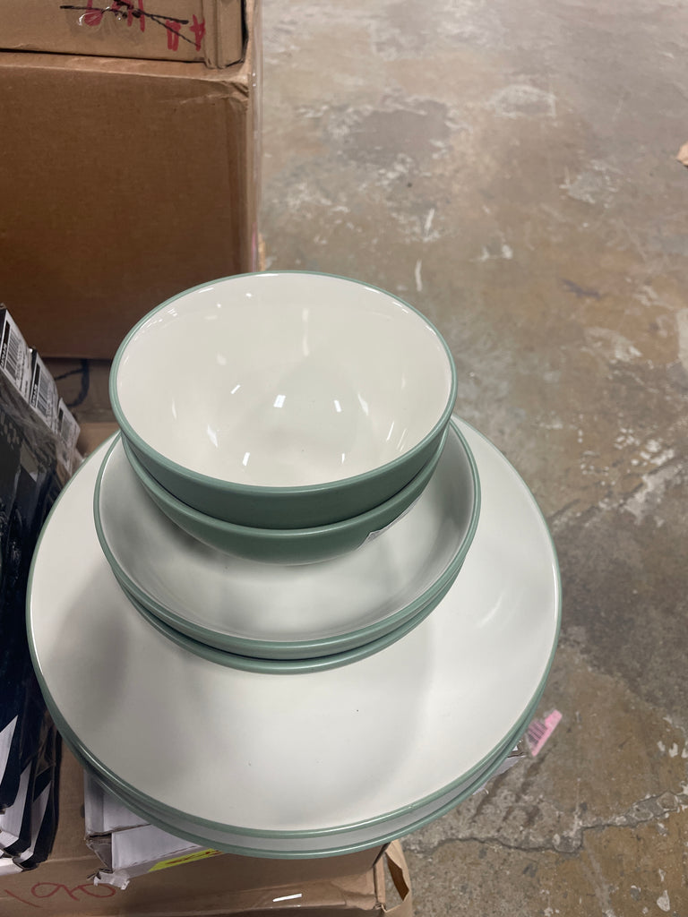 Open box item, this set includes 2 dinner plates, 2 rice bowls and 2 soup bowls.