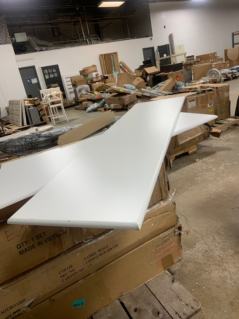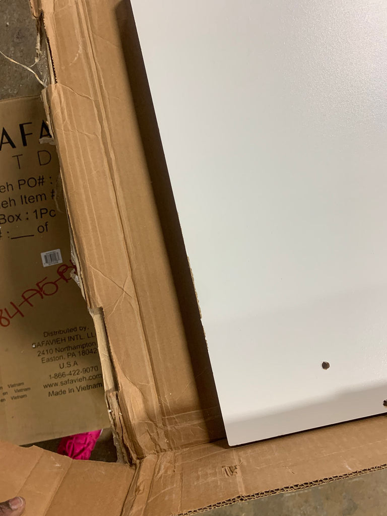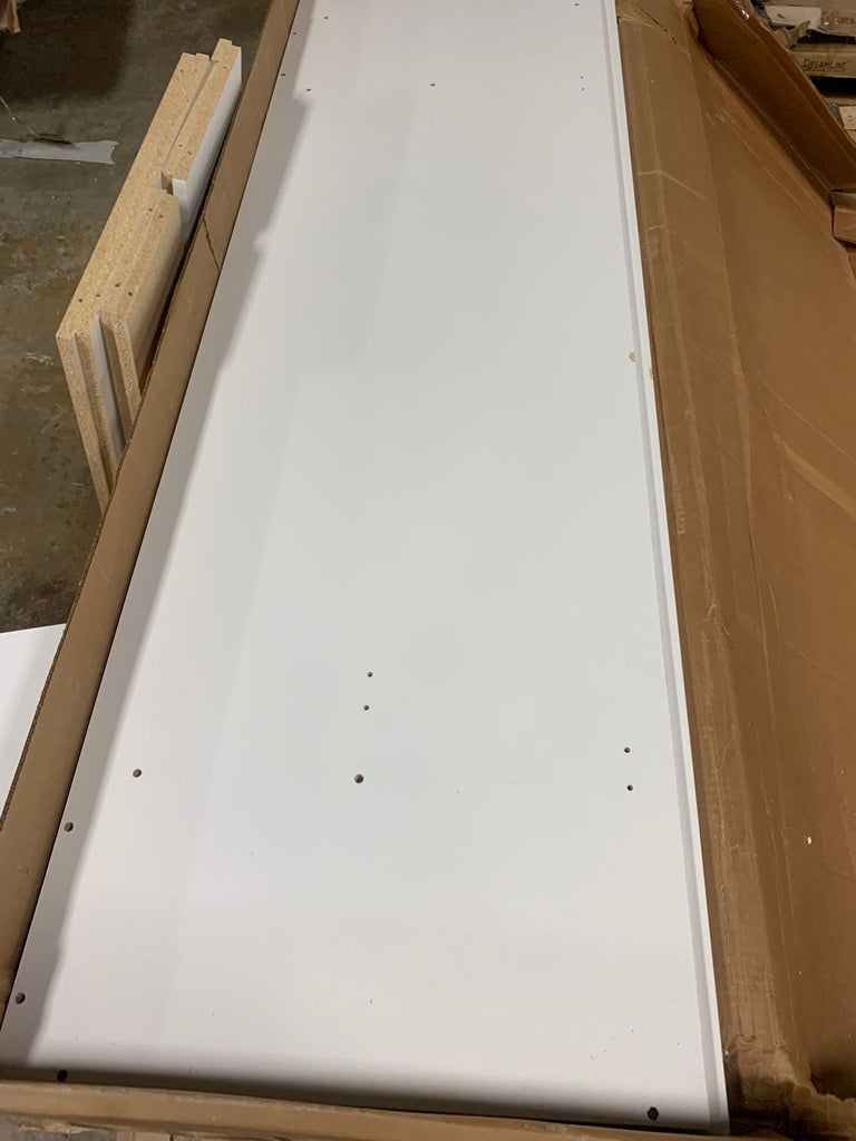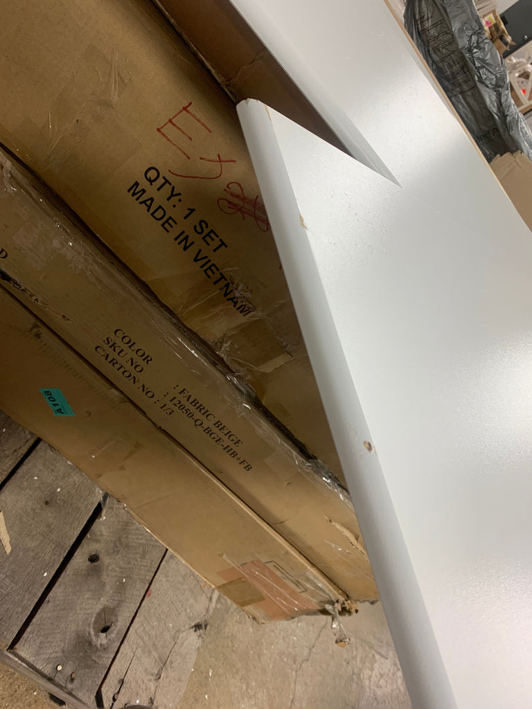 Open box, The color is white, Size: 65"x32"x20", there are some cosmetic blemishes and also some loose hardware some may be missing...this item has also been repackaged but appears to have all the pieces needed, please see in house photos for more details