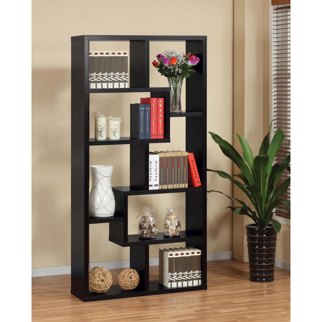See details/compare price: https://www.homedepot.com/p/Furniture-of-America-71-in-Black-Wood-8-shelf-Standard-Bookcase-with-Open-Back-27090BK/310553487