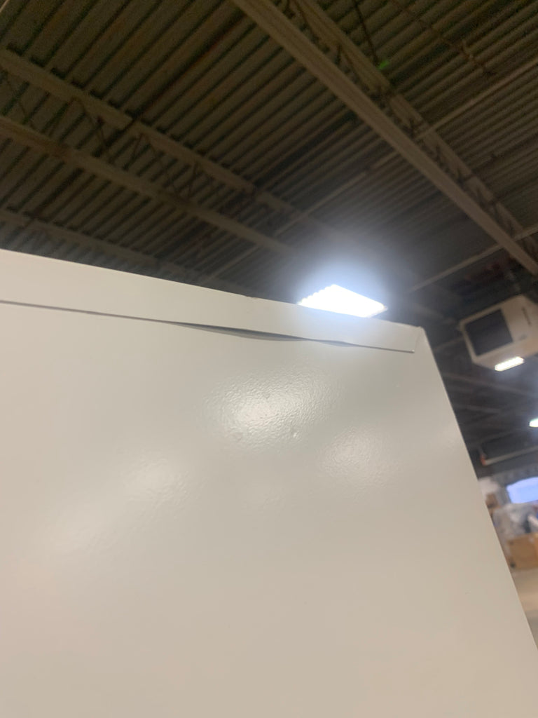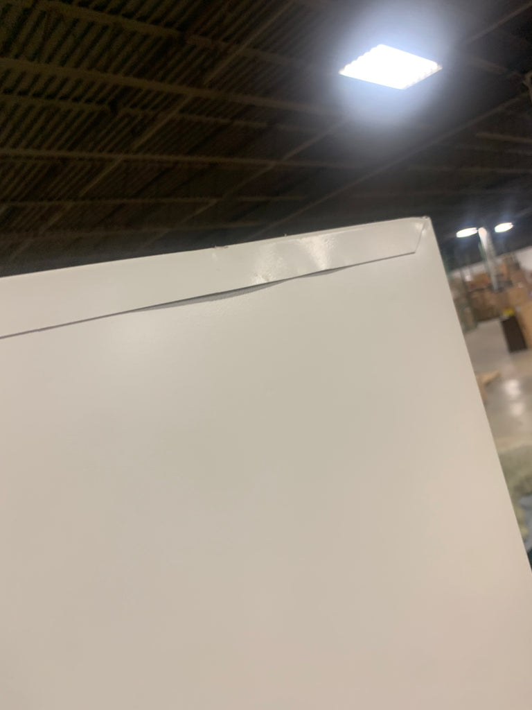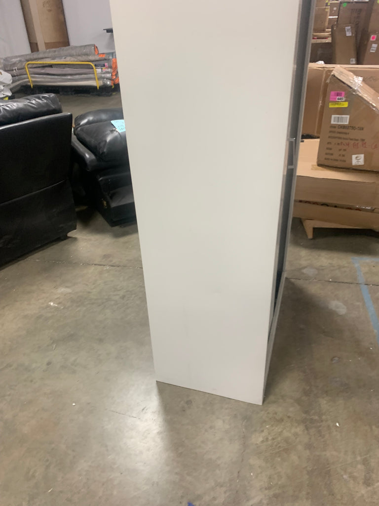 Out Of Box, SOLD AS IS.....there are some damages to this cabinet...is has multiple stickers stuck on it and a few dents....one of the shelves are bent on the inside of this cabinet and the doors do not slide ..see in house photos for more details