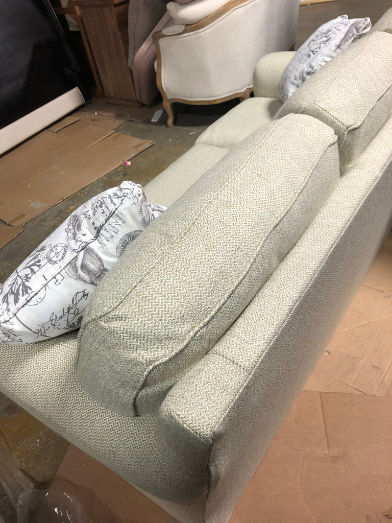 Comes with pillows pictured. Color is beige with flecks of green, see pictures for details.
