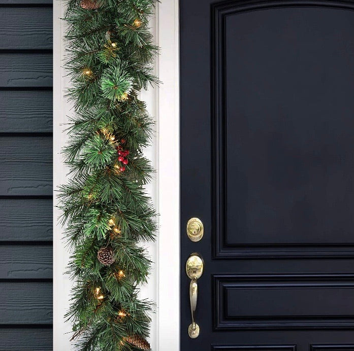 9' Glistening Pine Garland with Berries, Cones, Twigs and 50 Clear Lights CG1757