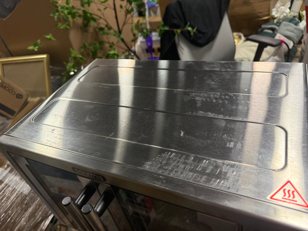 Note: Tested and turns on, shows signs of heavy use, has grease splatters on walls of oven and on all trays, see pictures
