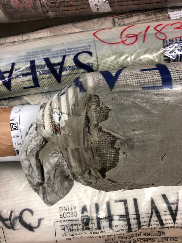 This item is in manufacturer's packaging and is in good condition. Some warehouse dust on bottom of rug, pictured.