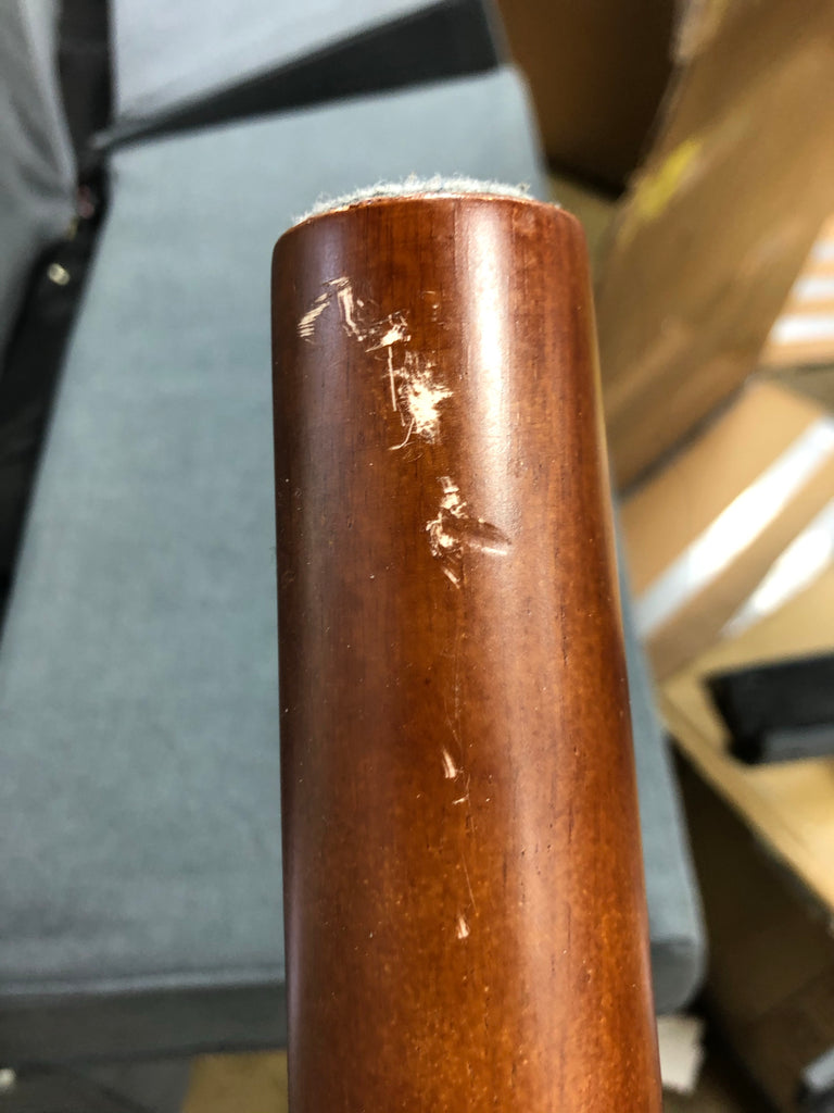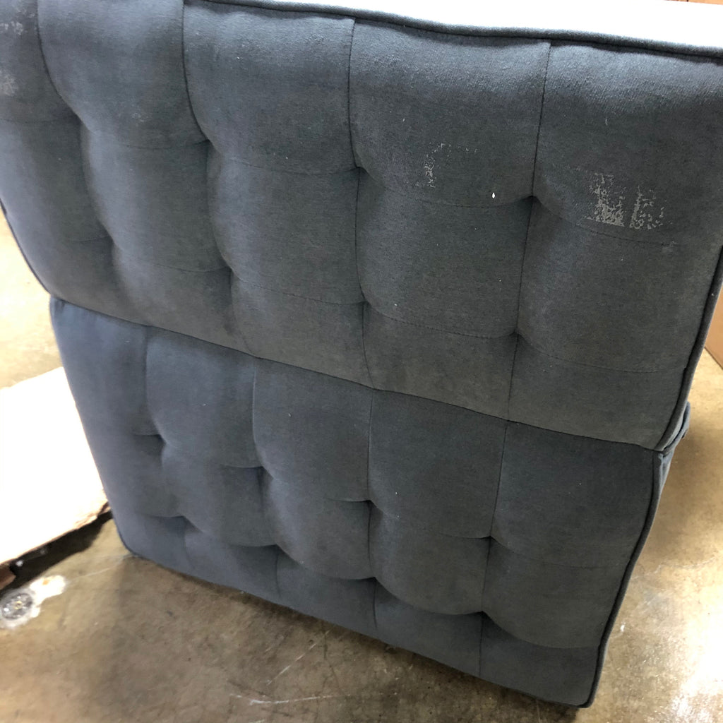 This is a previously opened box item in good condition. Assembly is required, hardware is included. Color is gray, has some leftover adhesive from tape on fabric, will need cleaned. Item is approximately 90" in length. Item is almost identical to "similar item" in link below.