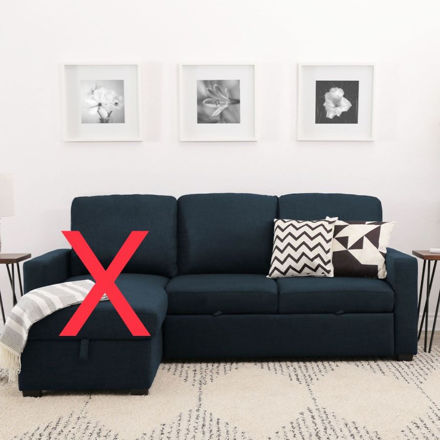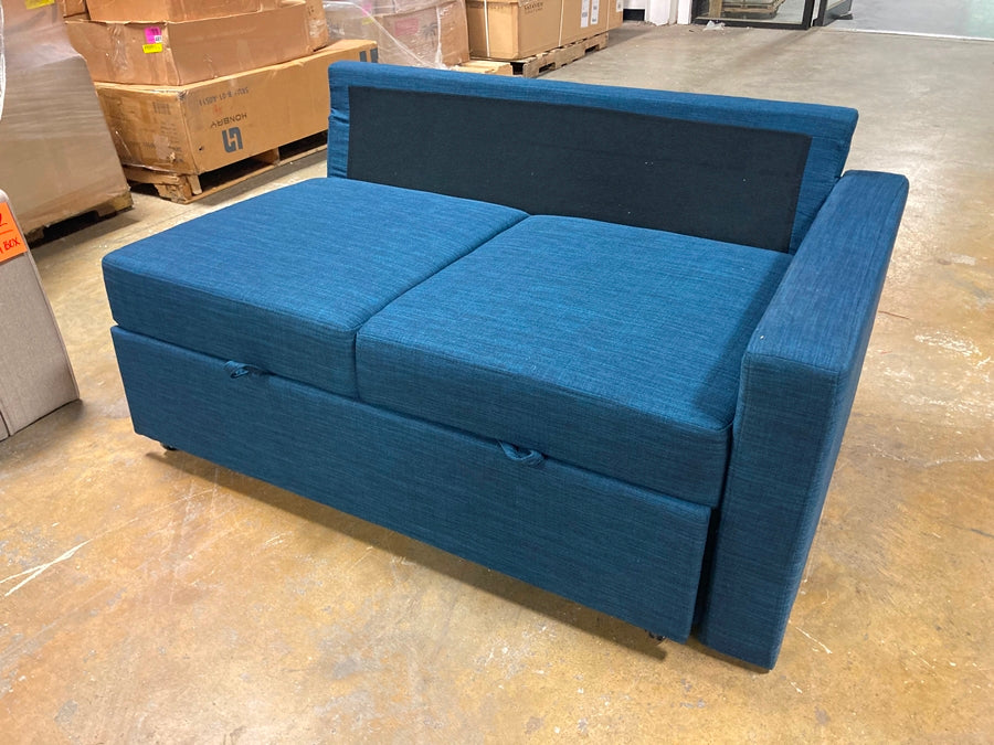 Note: OUT OF BOX, ASSEMBLED ITEM. **AS IS - 1 Piece only! Back cushions NOT INCLUDED. Legs/Feet are NOT INCLUDED. See pictures for more details.** Arm can be attached to either end of the piece. Color is a brighter blue than shown in stock photo. See in-house pictures for accurate color.