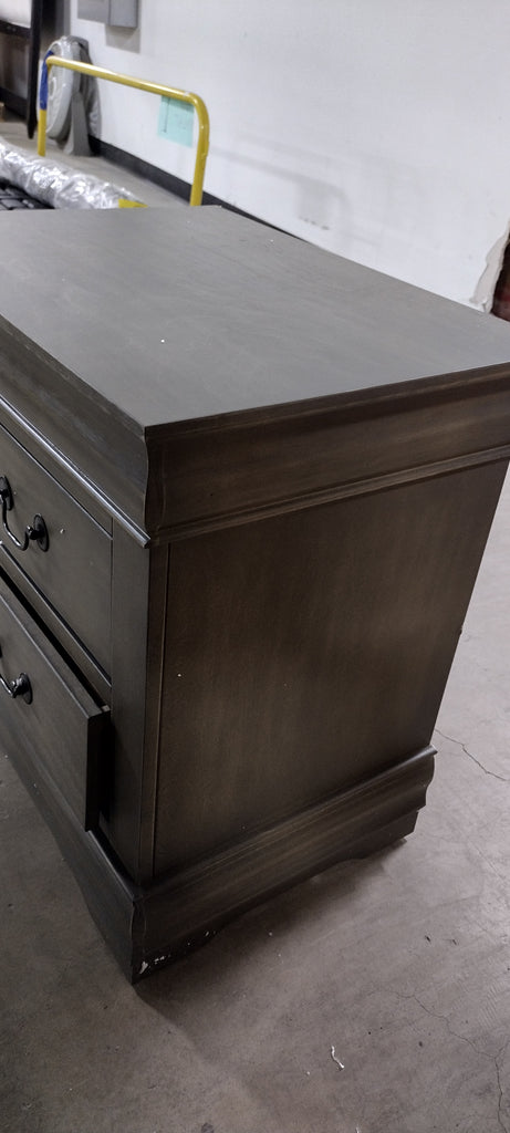 Note: As Is: damaged back corner on the top, small scuffing around the edges. bottom drawer does not close all the way. please see in-house photos for details