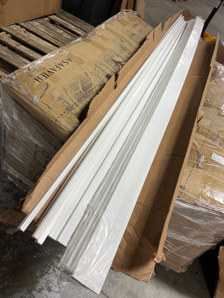 Note: This kit is shaker style and consists of 7 panels measuring 97"x3.5 and 6 quarter round 97" long. See in-house photos for more detail.