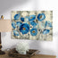 Blooming blue flowers with yellow pistils take center stage for a boost of botanical beauty, while a neutral and abstract brown and cream background balances out the bright hues and offers a touch of contemporary style.