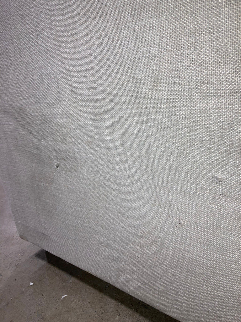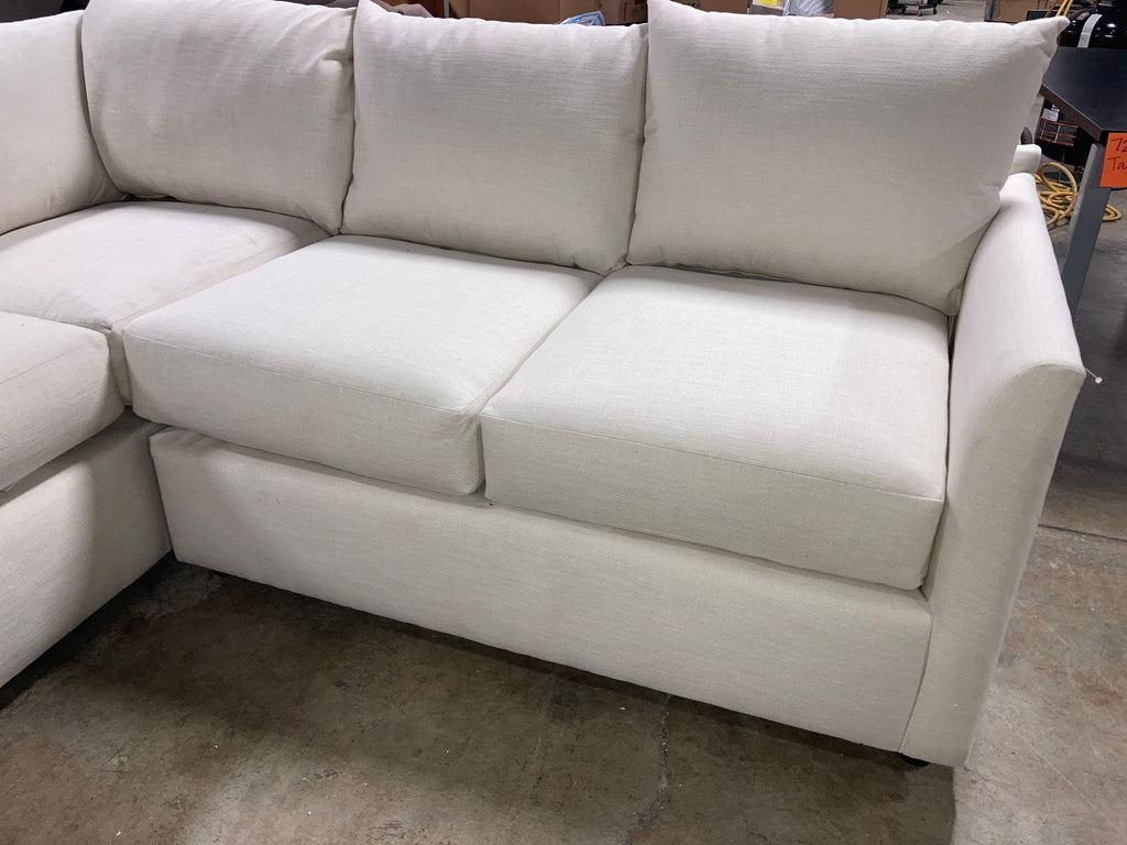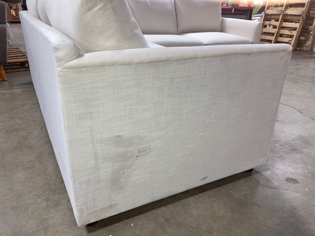 Note: OUT OF BOX, ASSEMBLED ITEM. **AS IS - Some warehouse dust on cushions of 3-seat sofa portion. Customer may need to do additional cleaning for more noticeable spots. Cushions can be flipped. 2-Seat loveseat portion does not show any warehouse dust. Small tear and dust on end/side arm of 3-seat sofa portion. See pictures for details.**