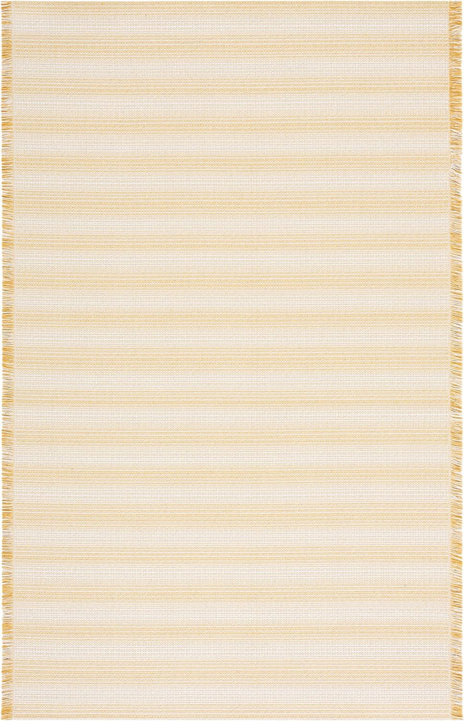 Augustine Collection Area Rug - 6'4" x 9'6"- Ivory & Yellow, Cotton Stripe Fringe