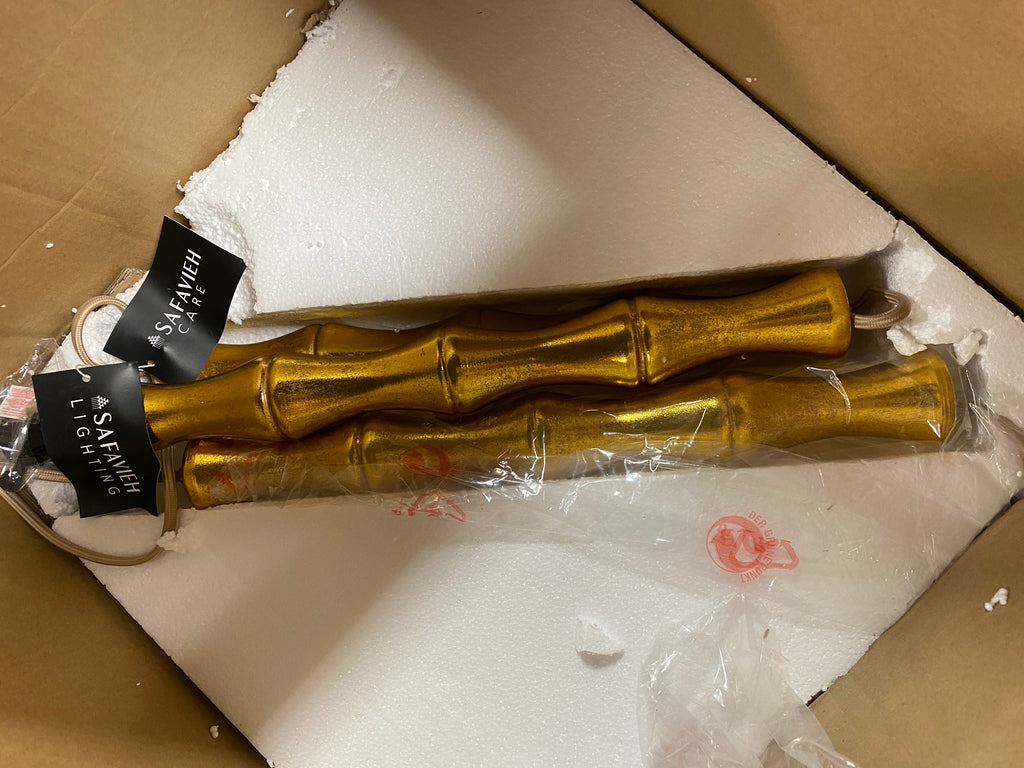 Items are in GREAT condition. This is an opened in-box item. Some assembly required. Includes a light bulb. Set includes two floor lamps. Color: Antique Gold