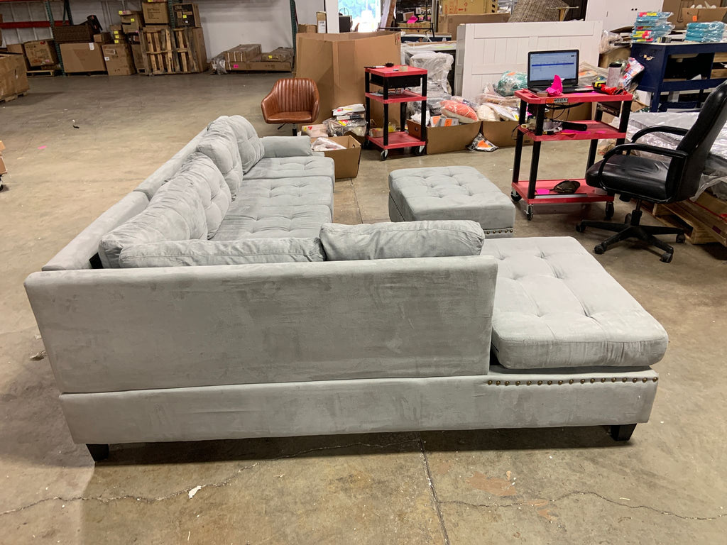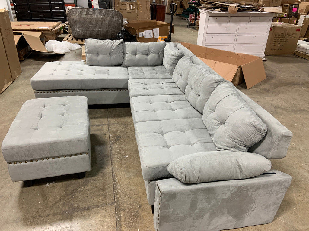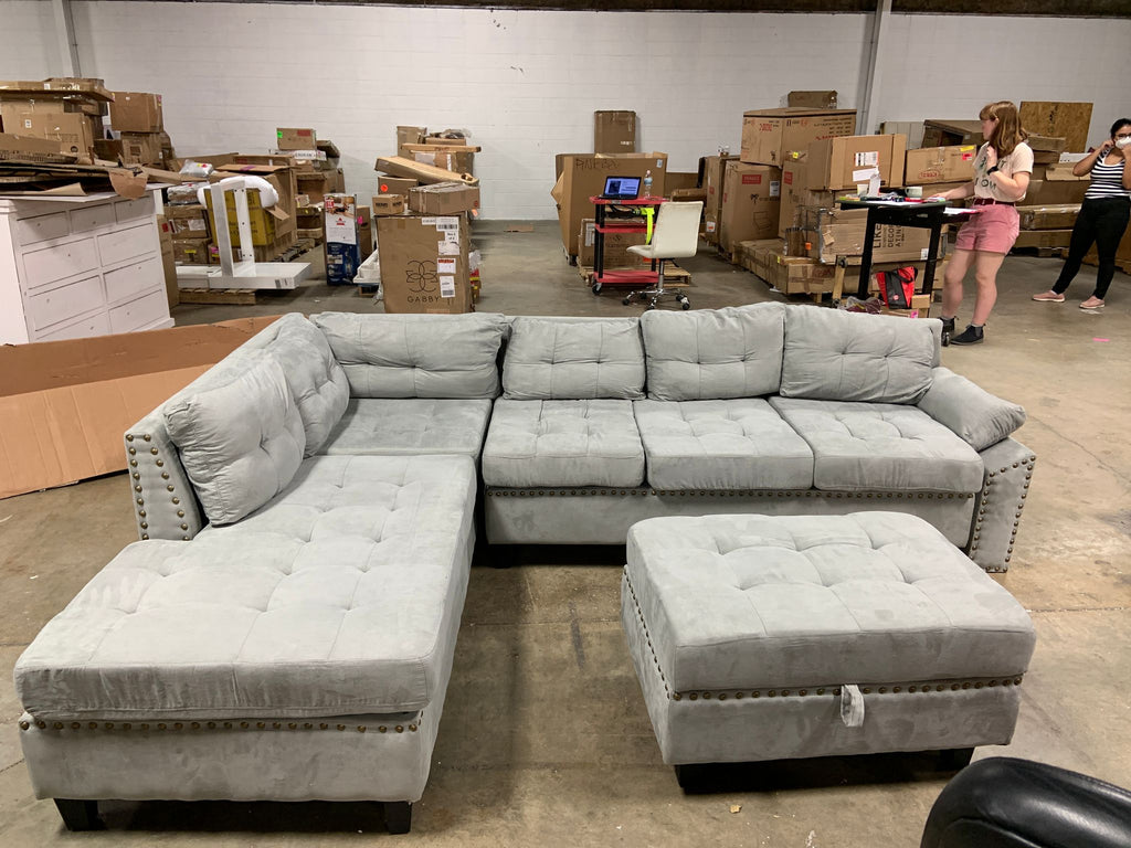 Open box, Sofa needs assembly. Hardware for ottoman assembly NOT included.
