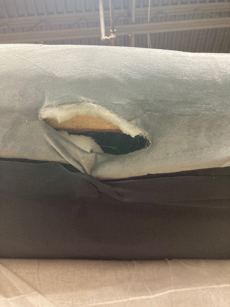 Open box item, Color: Gray, **AS IS - Damage to bottom/underside of the foot end. Tear in fabric, broken piece of wood inside. Doesn't affect functioning. **.