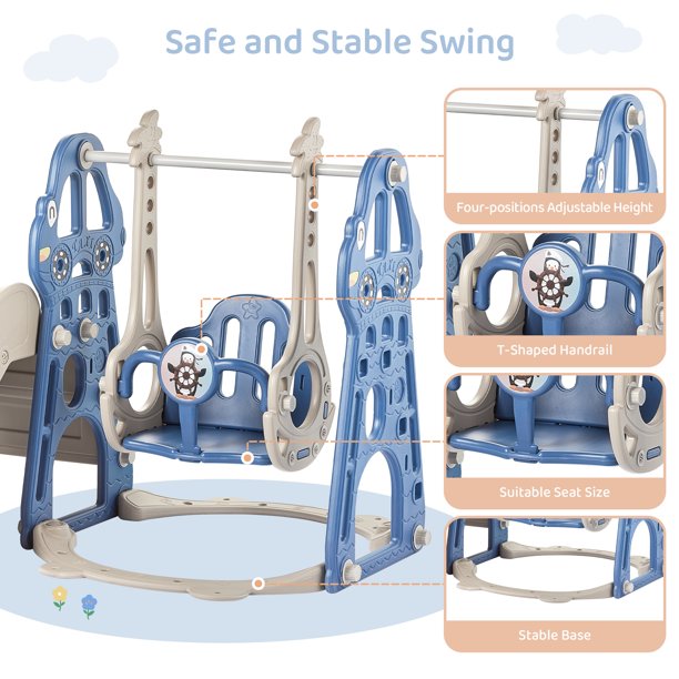 BABY 4-in-1 Kids Slide and Swing Set for Toddler Age 1-6, Extra Large Baby Indoor Outdoor Activity Playground with Basketball Hoop and Climber – Blue