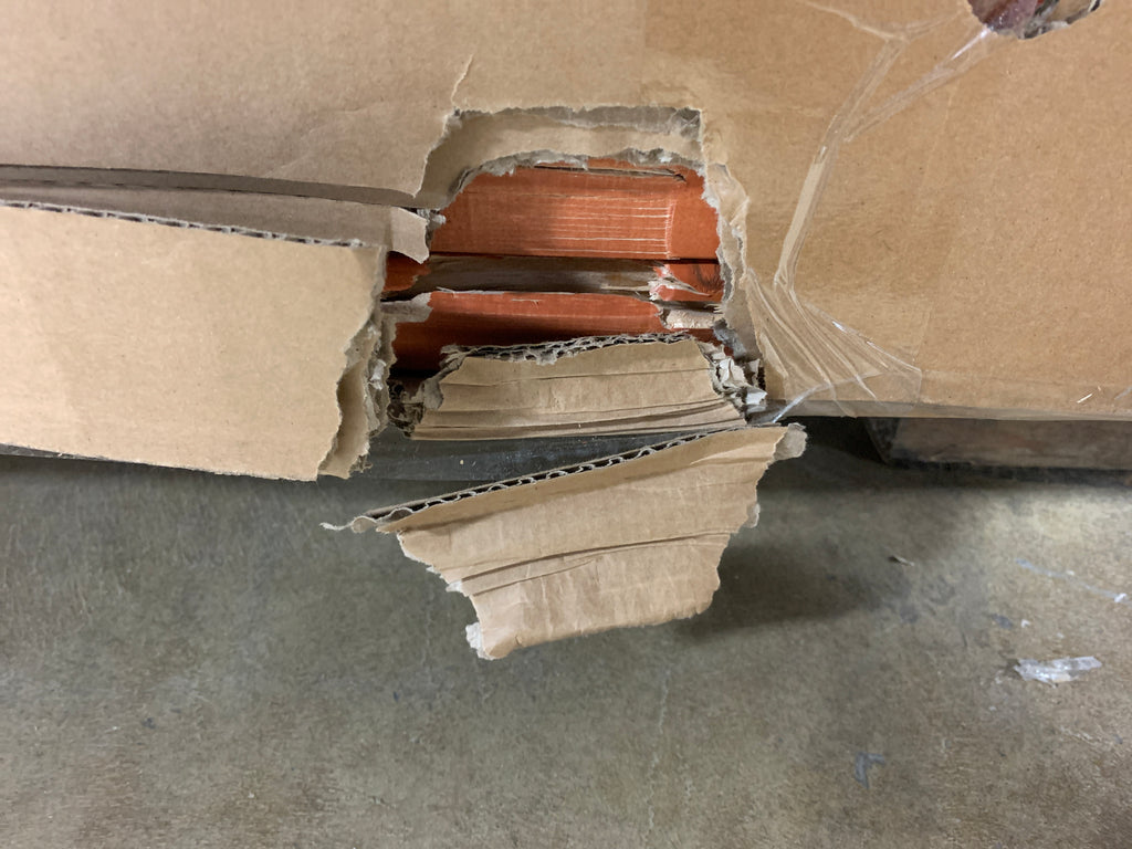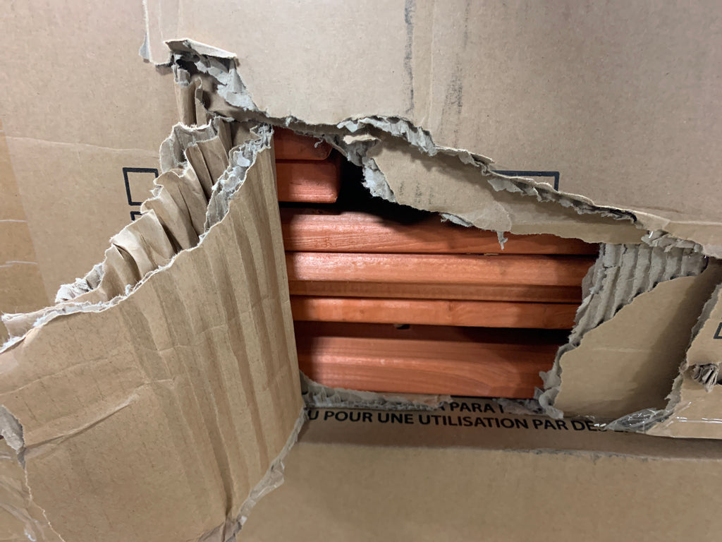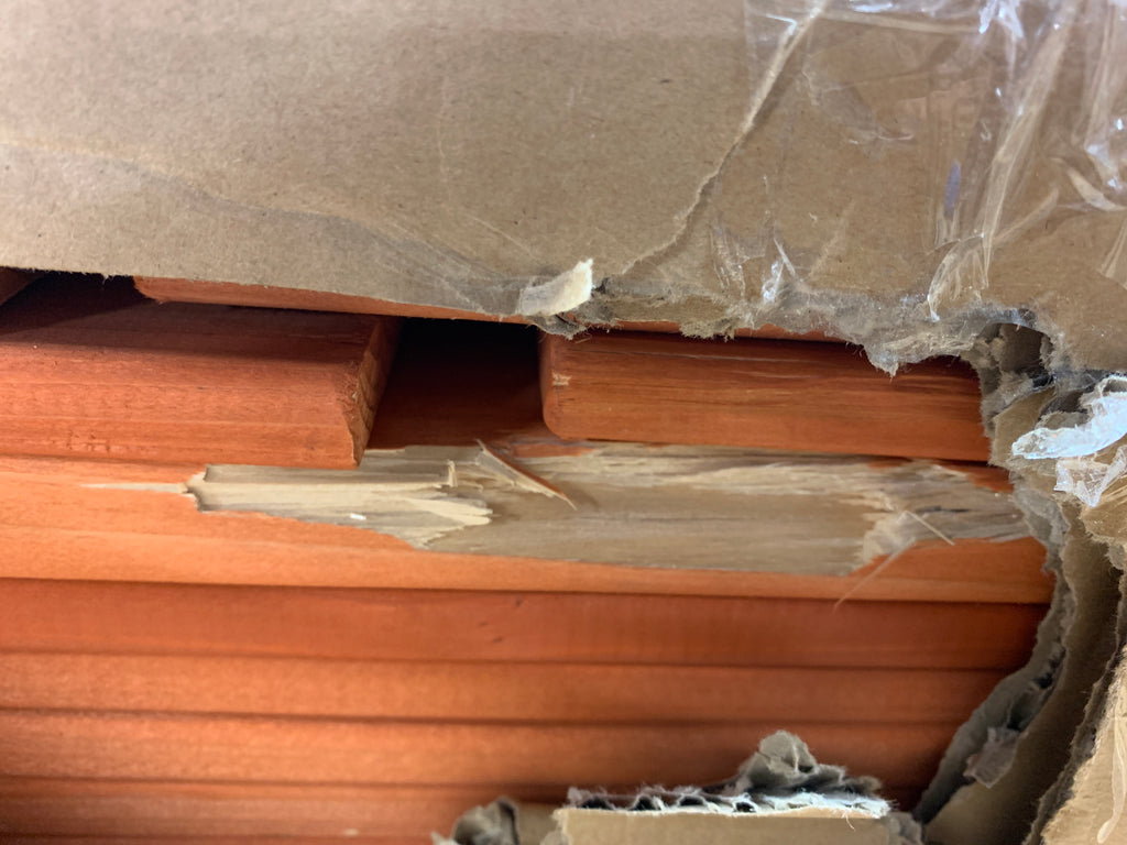 Some wood pieces show minor damage. Small pieces may be missing. Please see in-house photos.