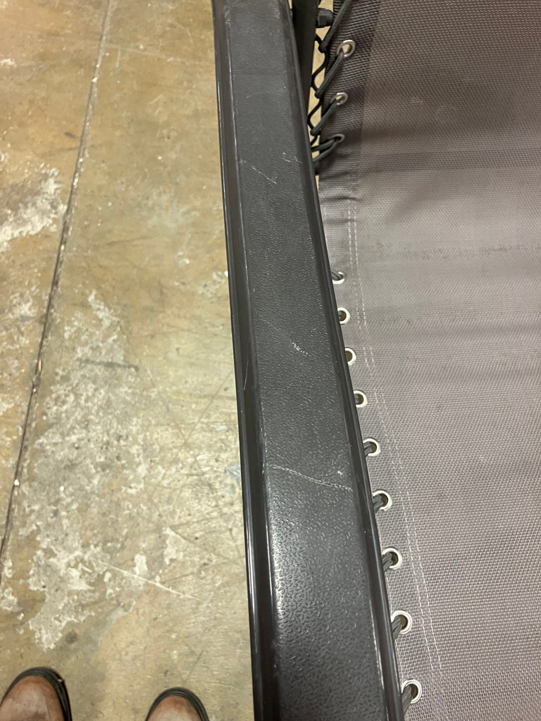 Note: Color is more of a gray/beige. Shows signs of previous use. has scratching/scuffing throughout. Missing head pillow. See pictures for more details