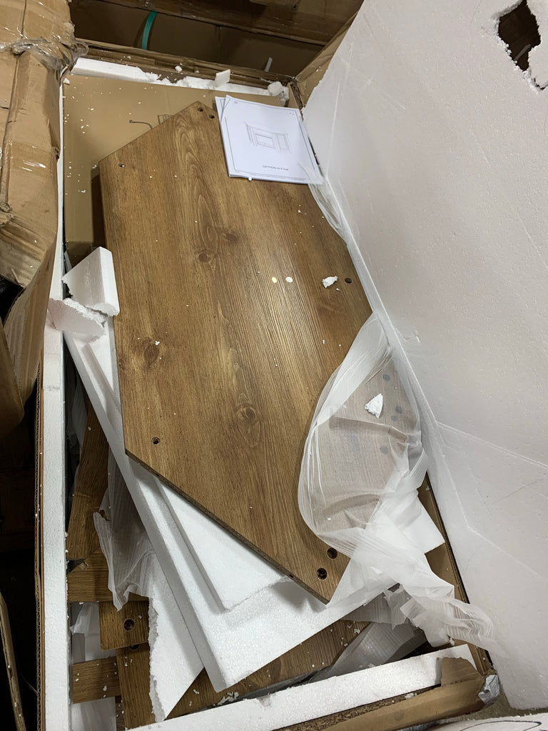Item is in-box and is in good condition. Assembly is required, loose content but major pieces are present. Small hardware and electric fireplace are included, for more info click the link below.