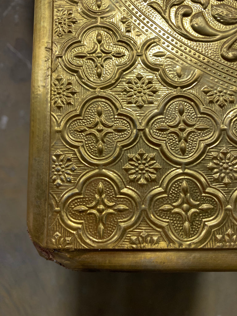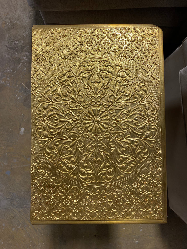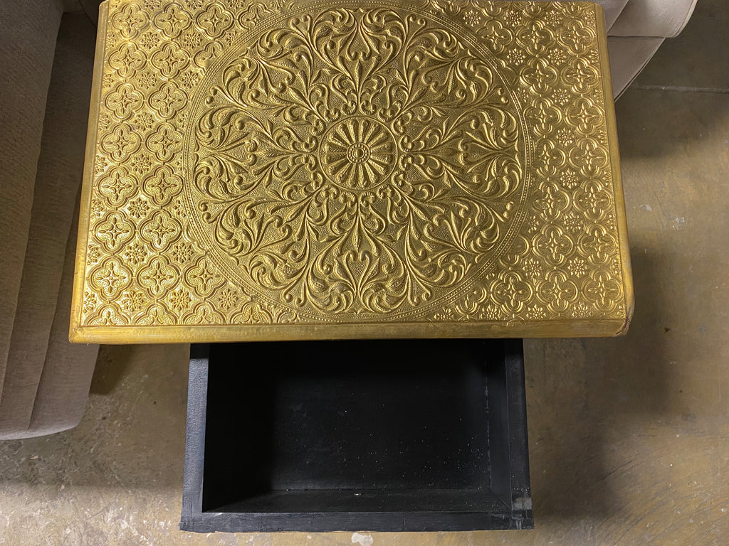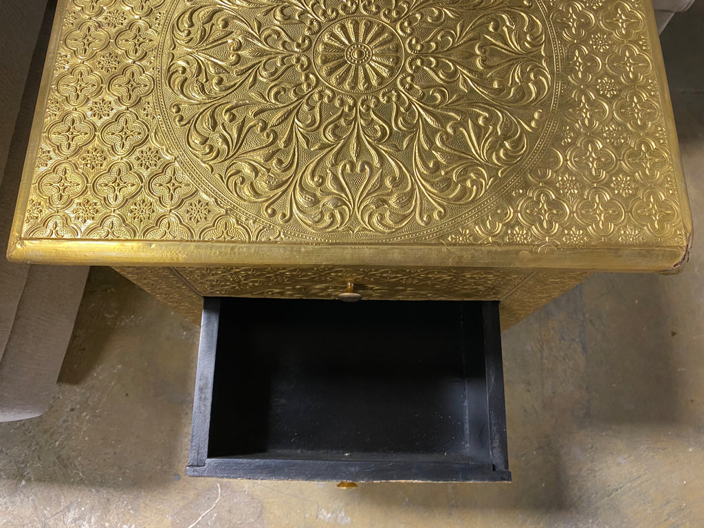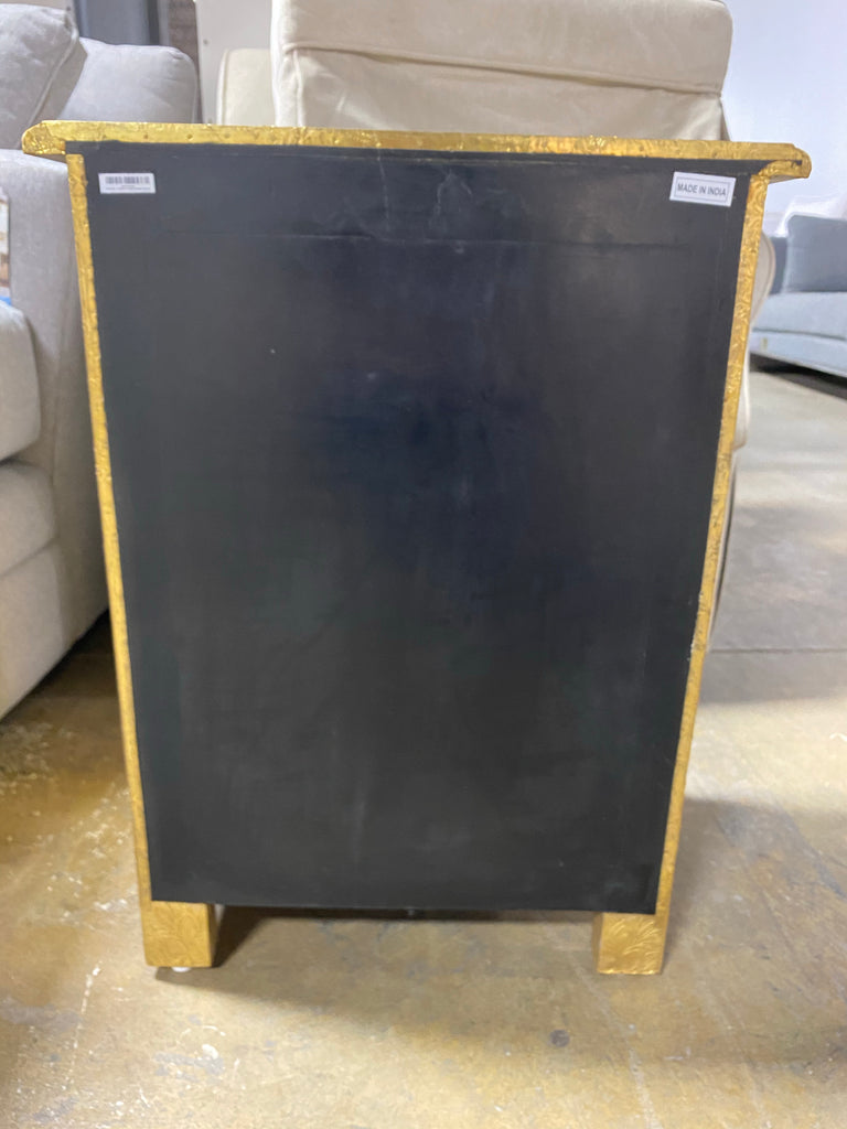 Item is in good condition. One corner has a dent; see photos for details/close-ups. Overall dimensions: 24"H x 12"W x 18"D. Color: Gold