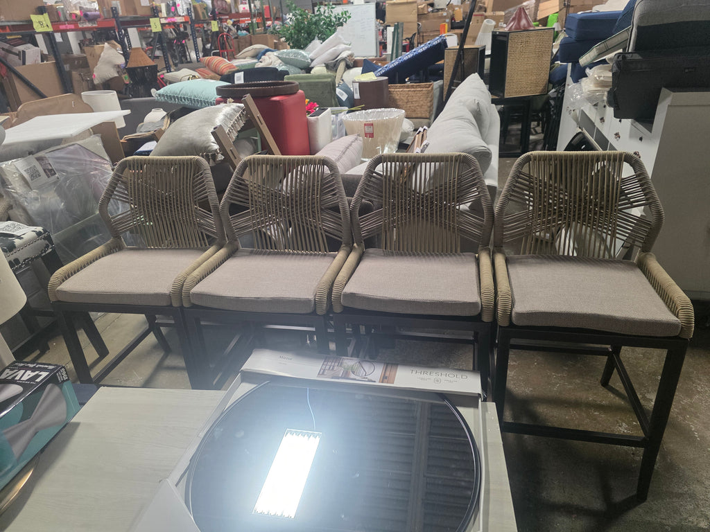 Bayou Breeze Modern Wicker Rattan Barstools With Back Aluminum - SHOWROOM ITEM