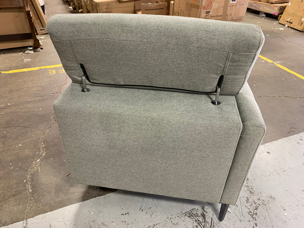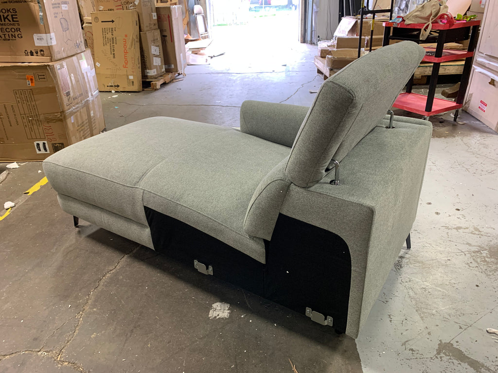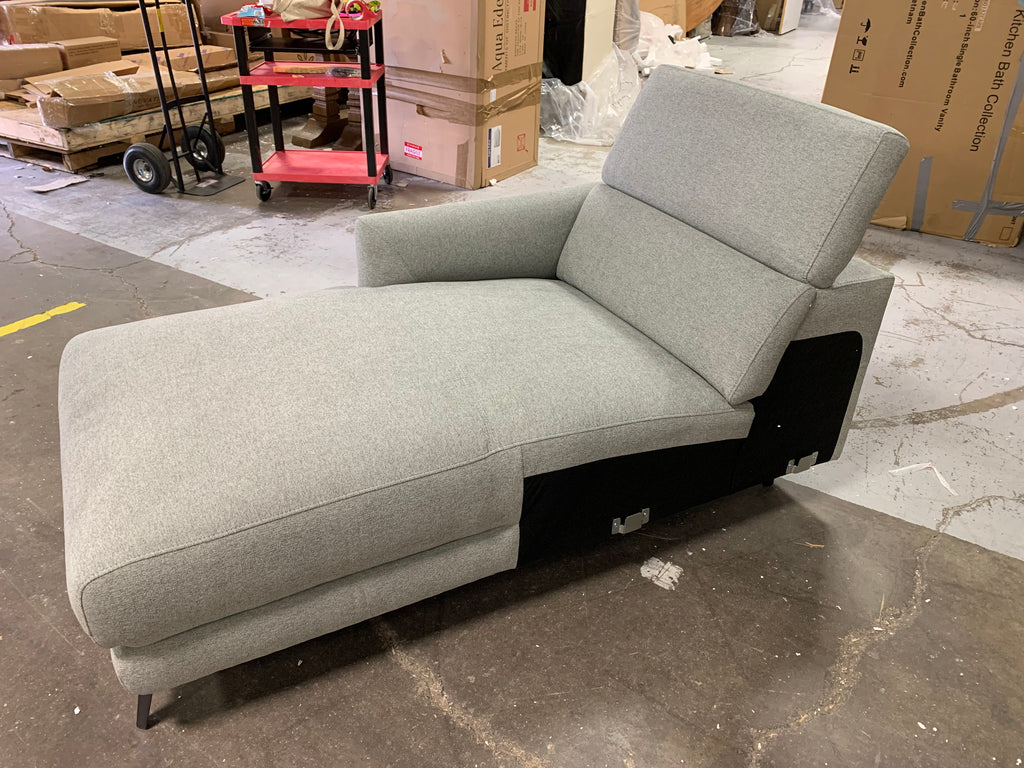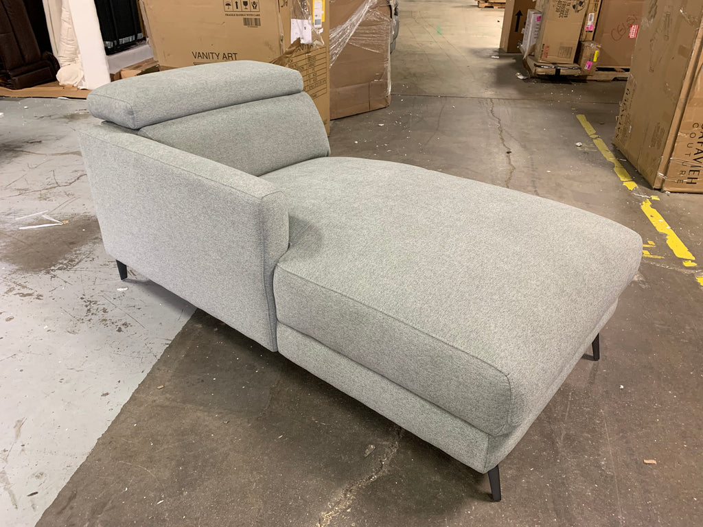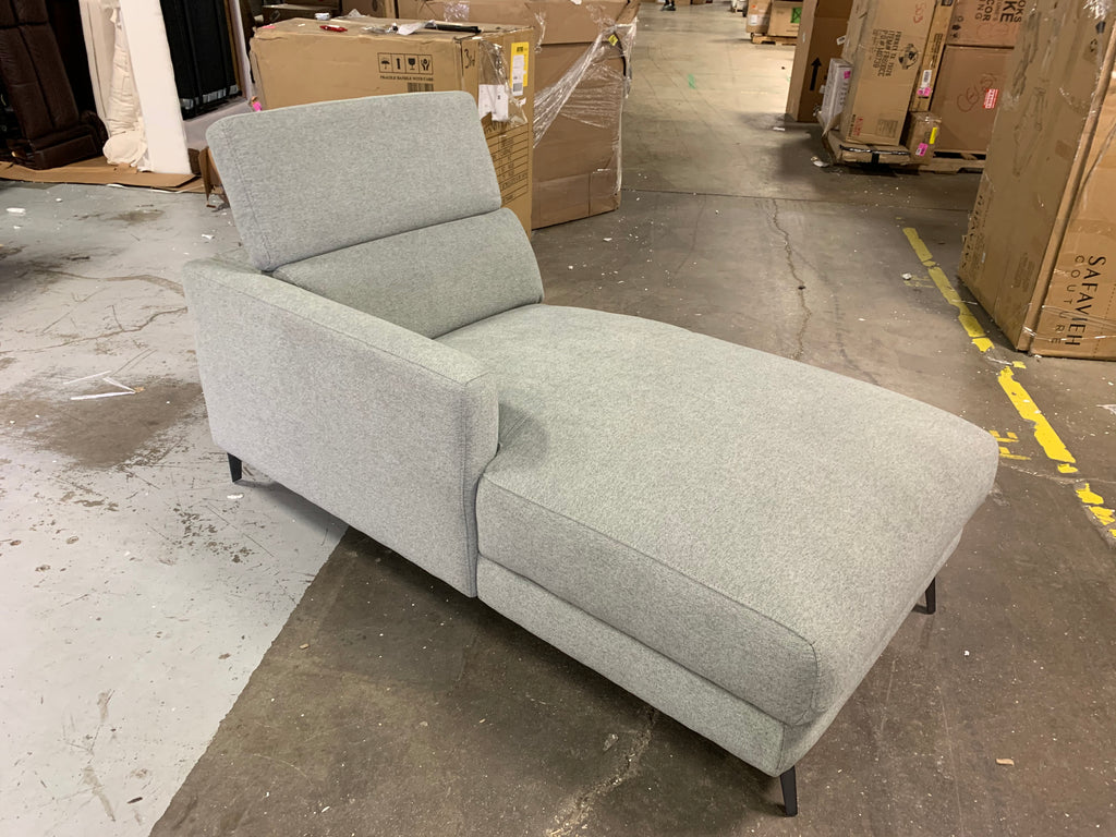 This chaise lounge piece is part of a sectional, but can function on it's own. The top headrest is adjustable. No rips or stains. Not all of the legs match because it is missing the rest of the sectional. Please see all photos and the link below for more details.