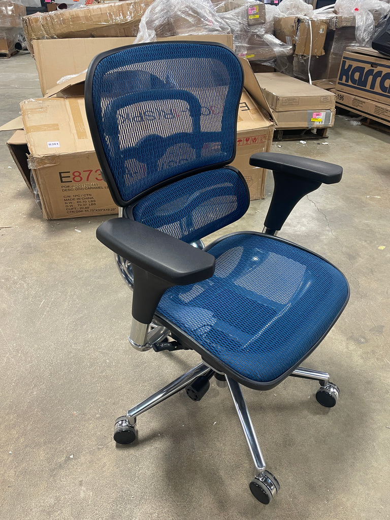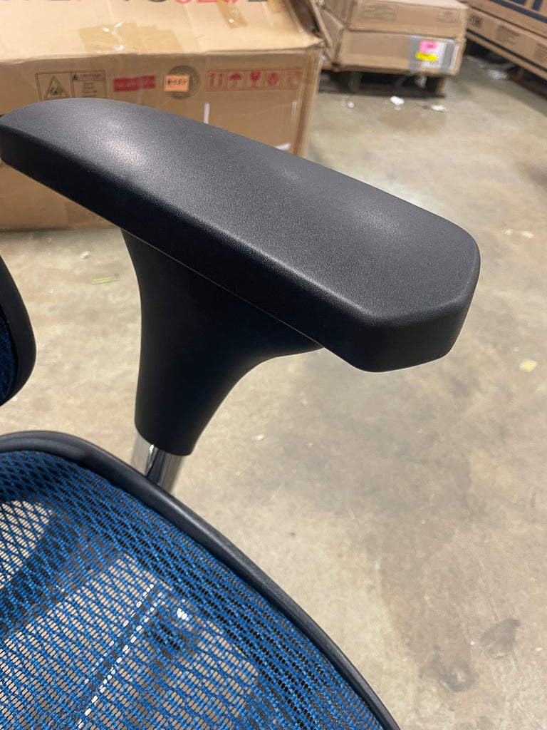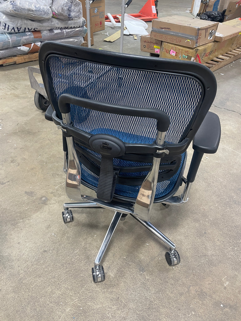 Out of box item, fully assembled. This item is in great condition except it does have a few assembly scratches in the metal and some warehouse dust on the wheels but all functions on the chair work great. See pics.