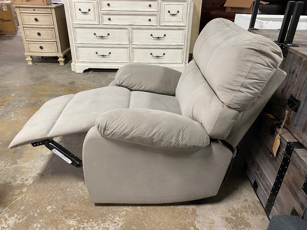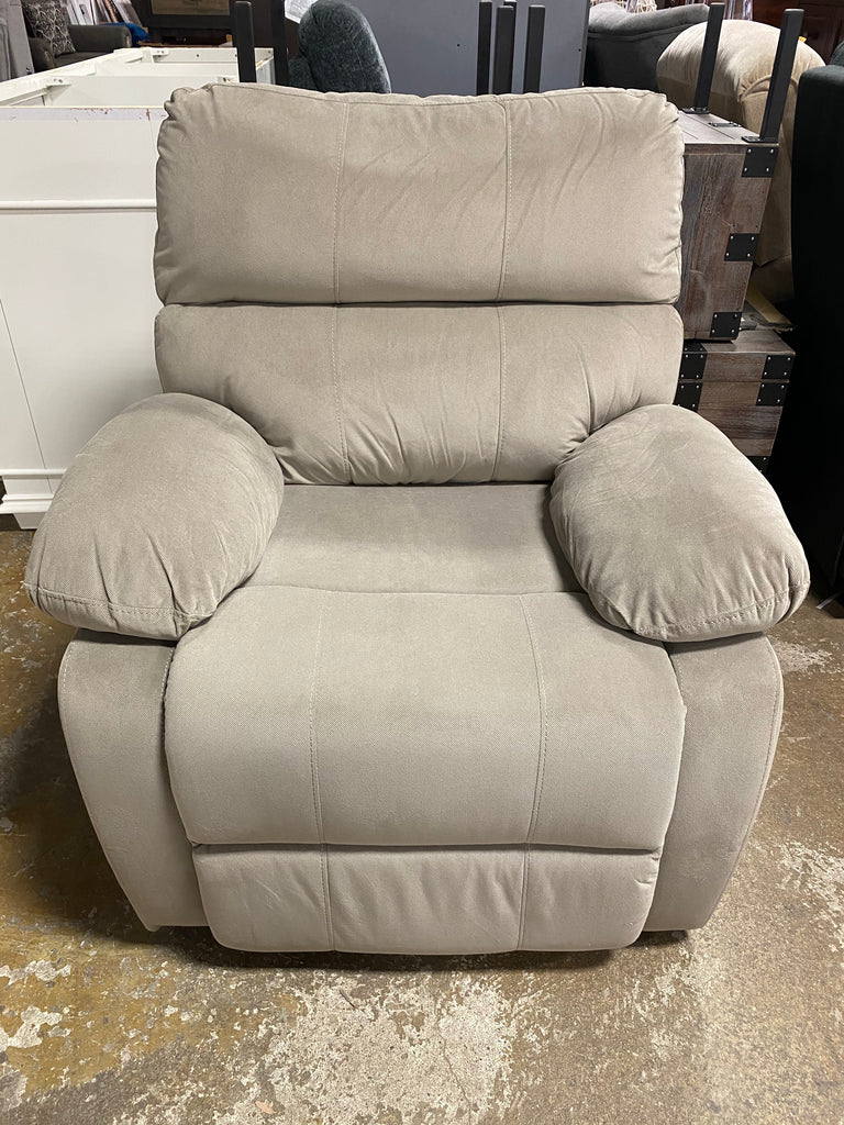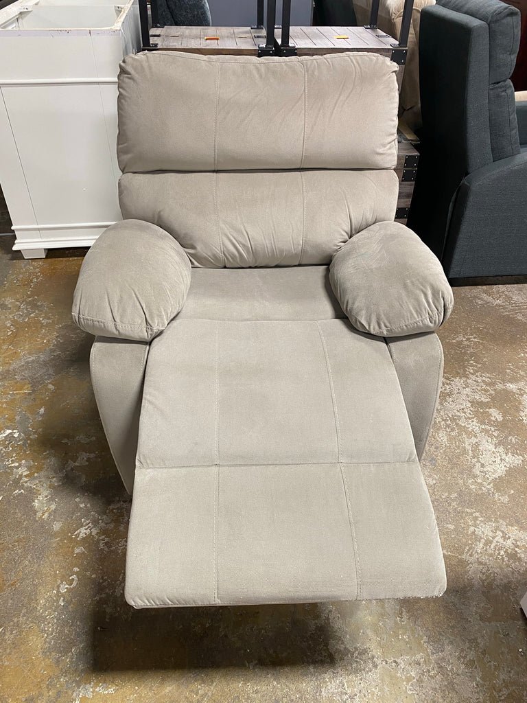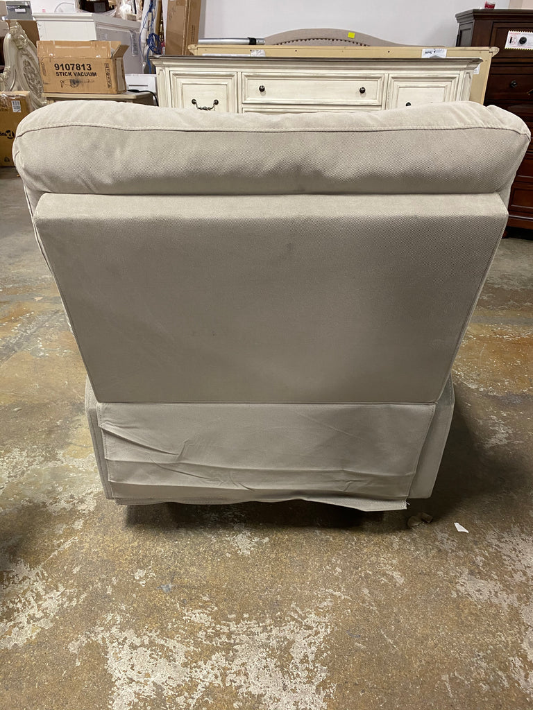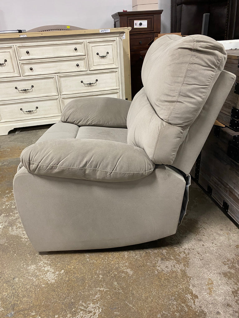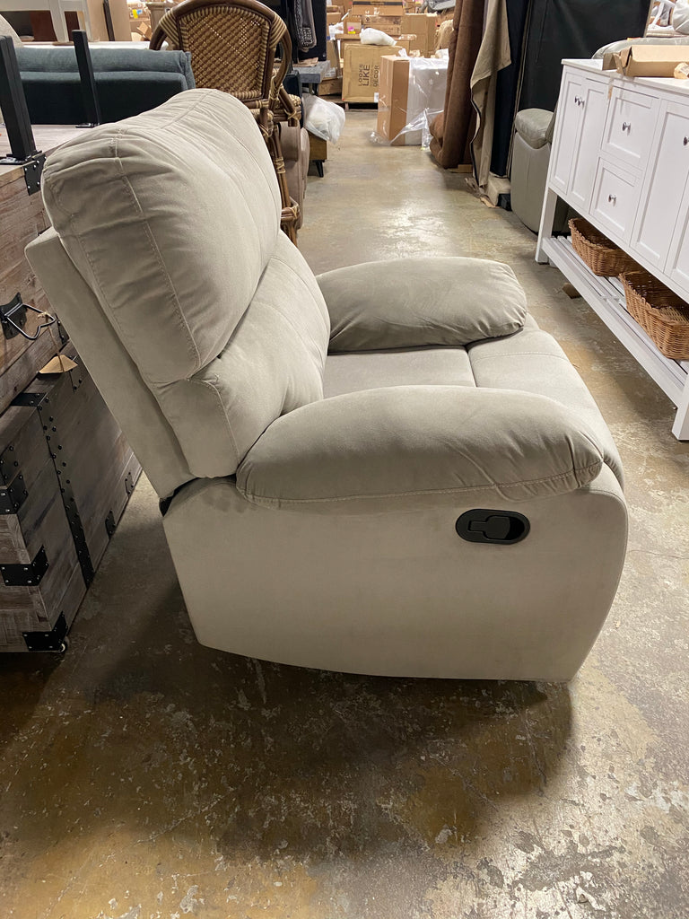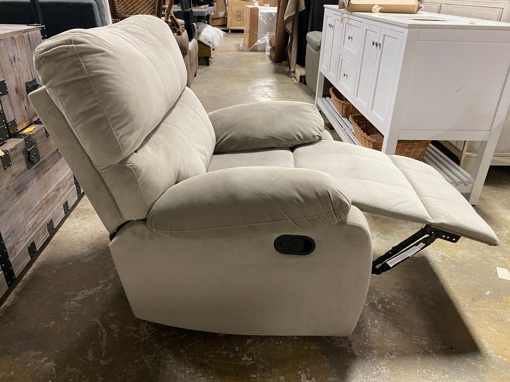 Item is in GREAT condition.  This is an out-of-box and assembled item.  Manual reclining function works.  Upholstery color: Beige