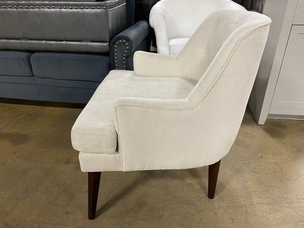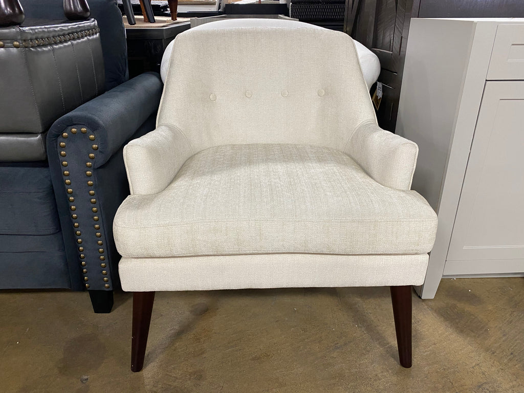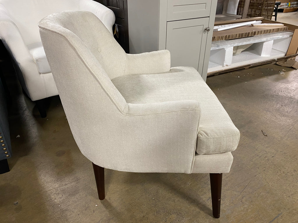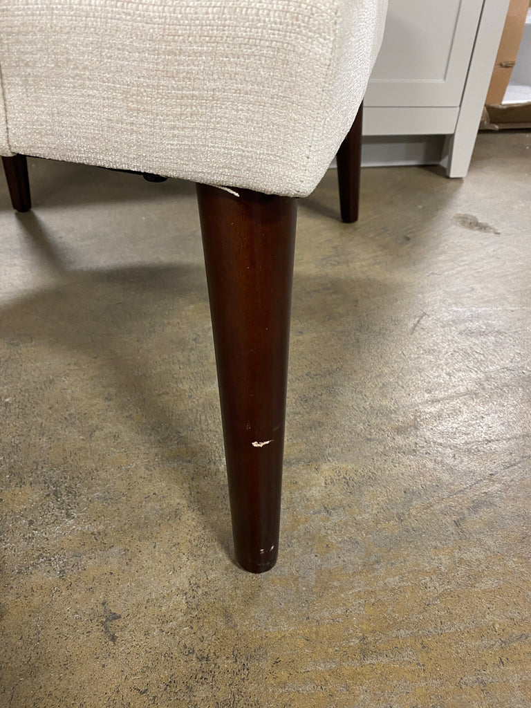 Item is in great condition. This is an out-of-box and assembled item. There is a small scratch in the front left leg; see photos for details. Color: Beige