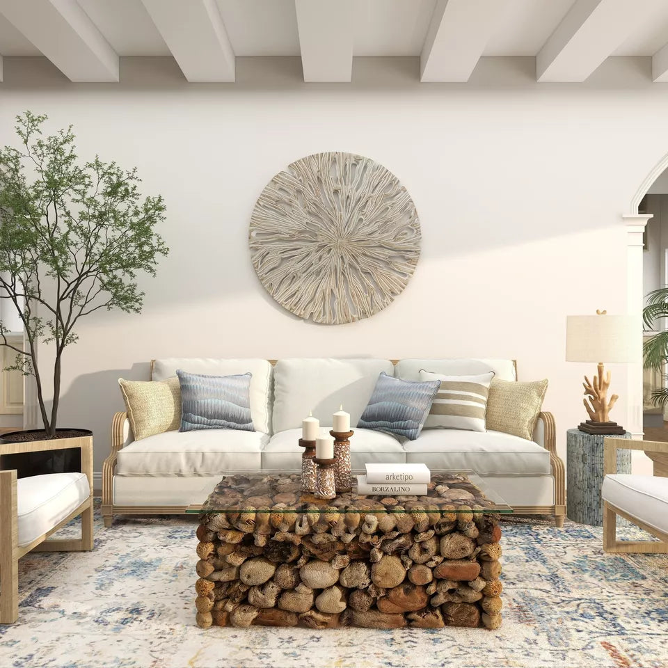 Beige Wooden Handmade Intricately Carved Starburst Home Wall Beige