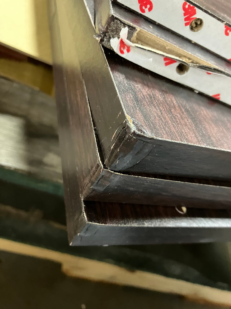 Note: The impact damage on multiple corners also has a ding on the end of the other board. See pictures for more details.