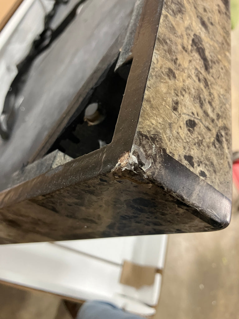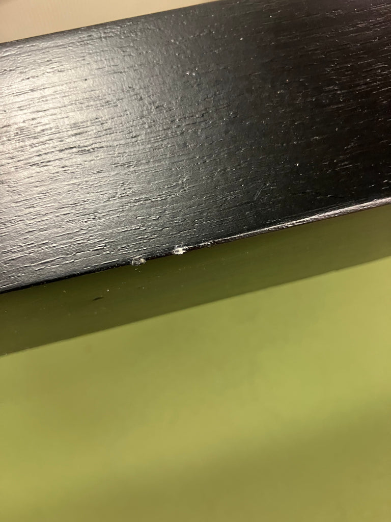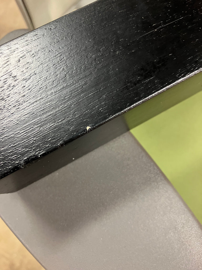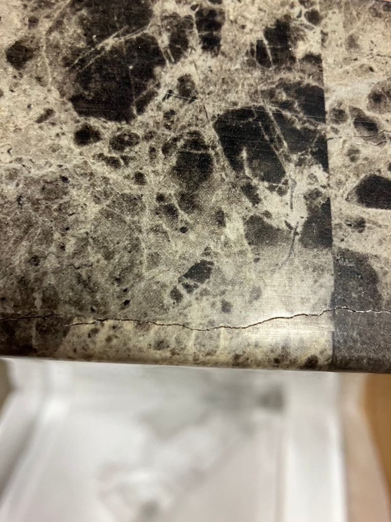 Note: 2 places on the side of the table top have some hairline cracks starting. 1 bottom corner of the top is chipped. Legs have some minor chipping. The hardware has been opened so possibly missing some. See pictures for more details.