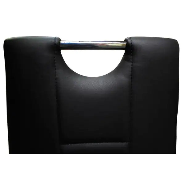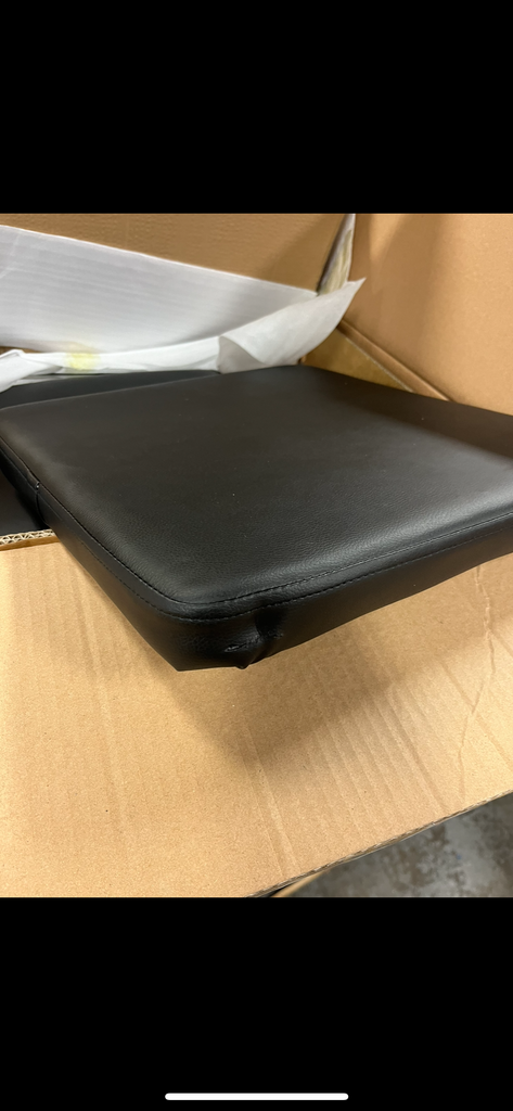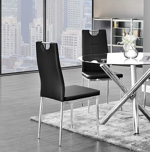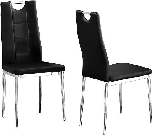 Note: This set of 2 chairs are black and have some adhesive that will need to be cleaned off in addition to the indention from improper packaging. One of the seat cushios has a small hole on its side. See photos for details.